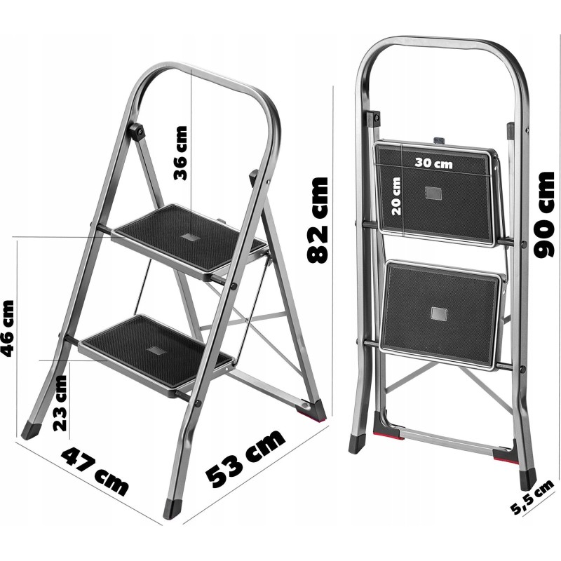 - Maße der Leiter im aufgeklappten Zustand: 47 x 53 x 82 cm