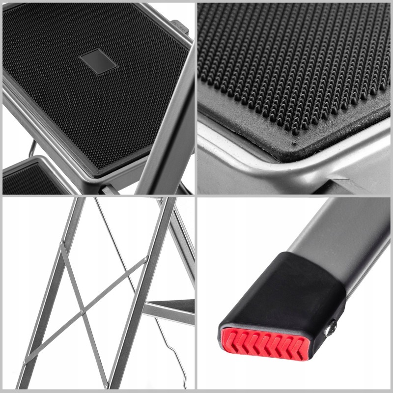 VERSCHIEDENE MODELLE – Die Stufenleiter ist in zwei Ausführungen erhältlich: mit 2 oder 3 Stufen. Wählen Sie das Modell, das für Ihre Zwecke am besten geeignet ist, und genießen Sie eine sichere Leiter für den täglichen Gebrauch.