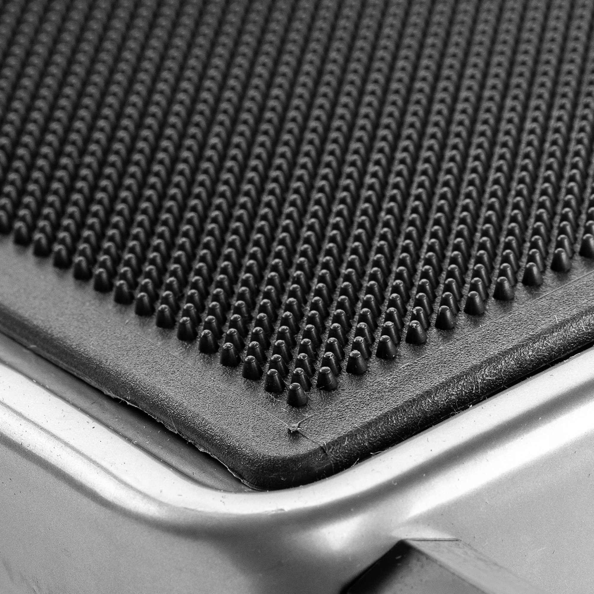 SICHER – Die kleine Aluminiumleiter ist mit rutschfesten Füßen ausgestattet, die für Sicherheit bei Arbeiten in der Höhe sorgen. Zusätzlich verfügt sie über breite Stufen mit rutschfester Matte und einen bequemen Griff, die vor Stürzen schützen.