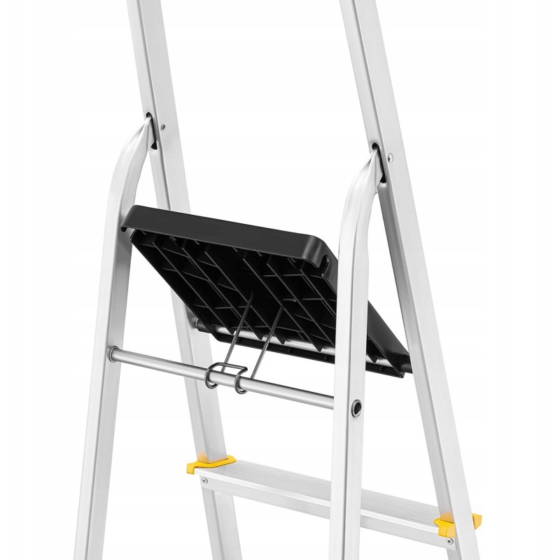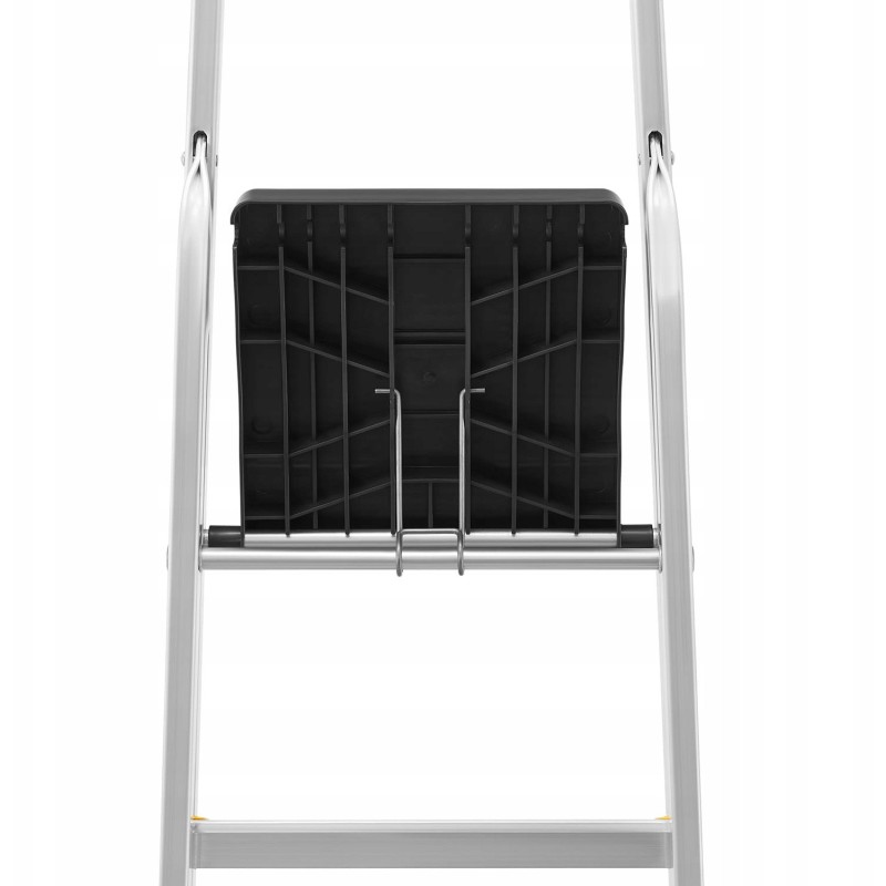 Die Leiter ist mit einer modernen rutschfesten Plattform aus Kunststoff ausgestattet, die Sicherheit und Komfort bei der Nutzung gewährleistet. Ihre Haltbarkeit übertrifft die herkömmlicher Stahlplattformen, was sie zu einer zuverlässigen Wahl in jeder Situation macht.