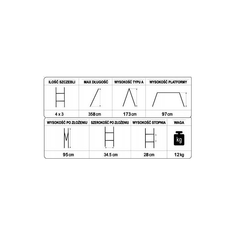 - Gewicht der Leiter: 12 kg