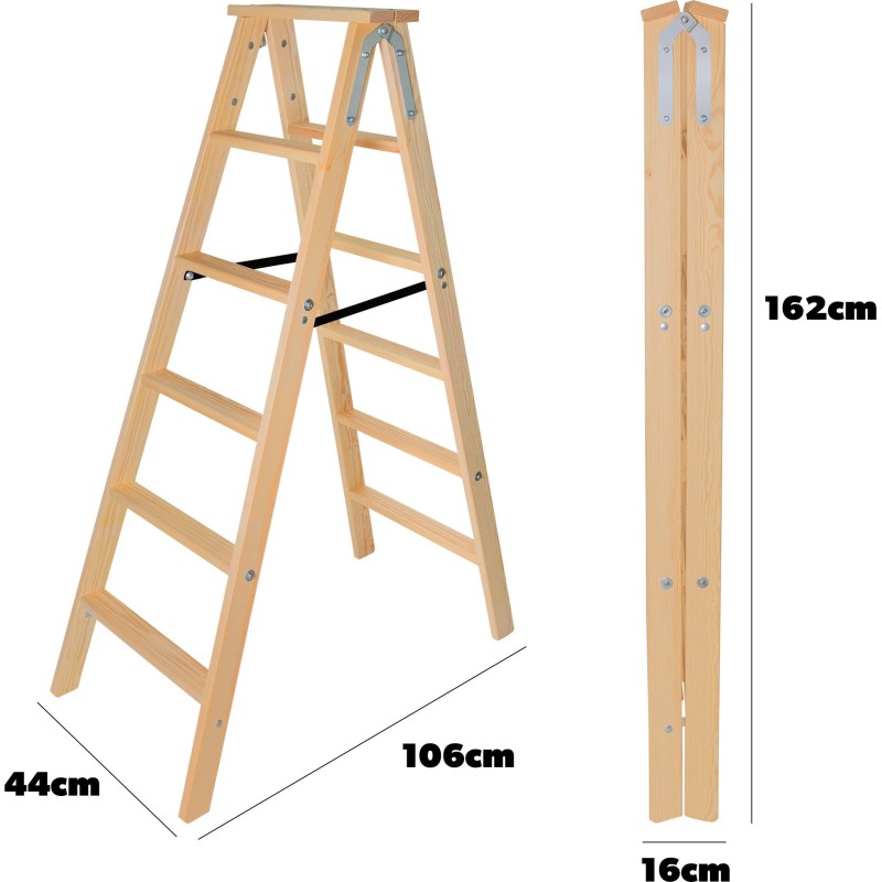 Kadax KADAX 6-stufige Holz-Klappleiter, doppelseitig, für Malerarbeiten, für den Hausgebrauch