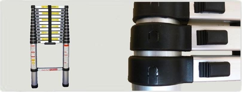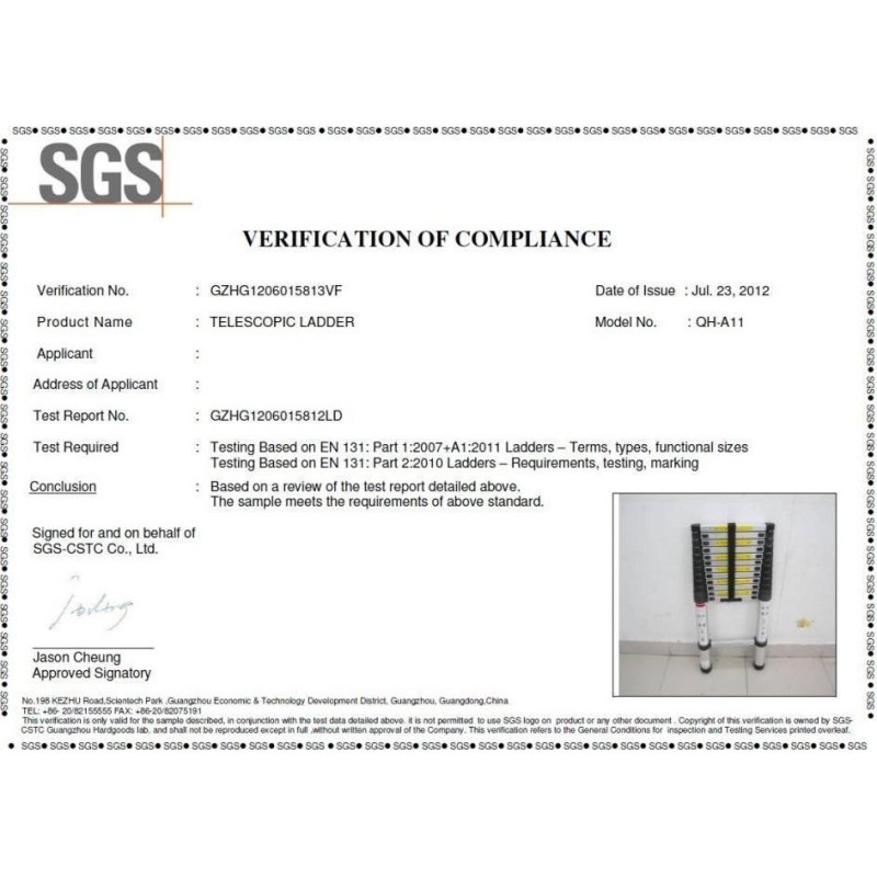Sie besteht aus hochwertigen Materialien. Die Teleskoprohre und Sprossen sind aus Aluminium gefertigt. Die hohe Qualität wird durch Zertifikate zur Konformität mit den Normen EN131 und CE bestätigt.