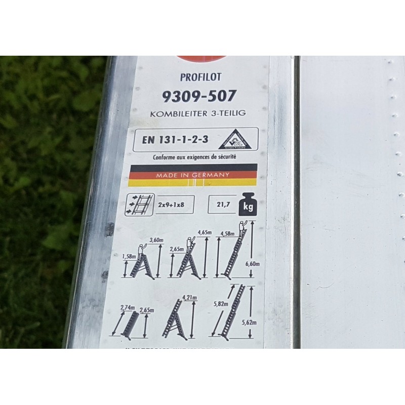 3-teilige Aluminium-Kombileiter mit ProfiLOT-System, die für Stabilität auf unebenem Untergrund sorgt.