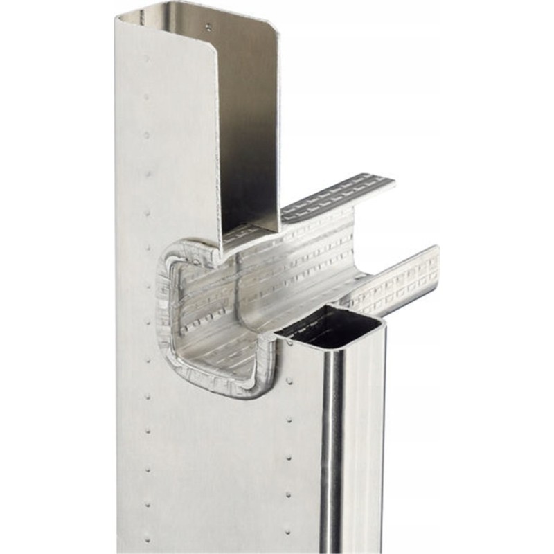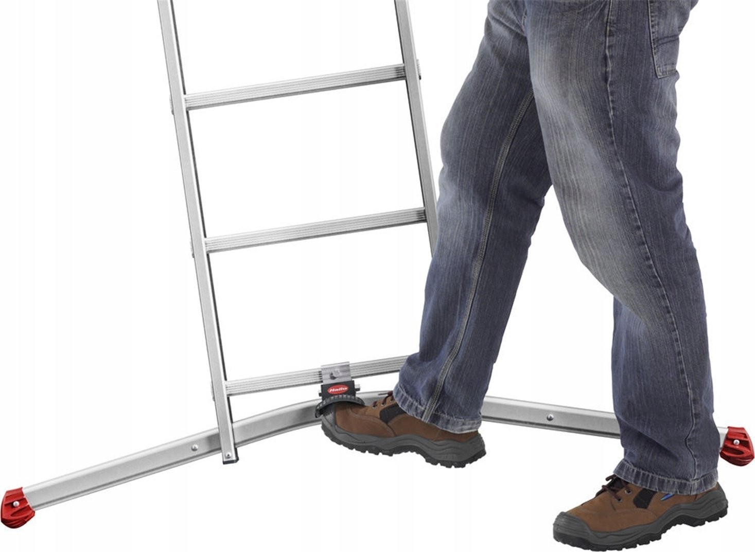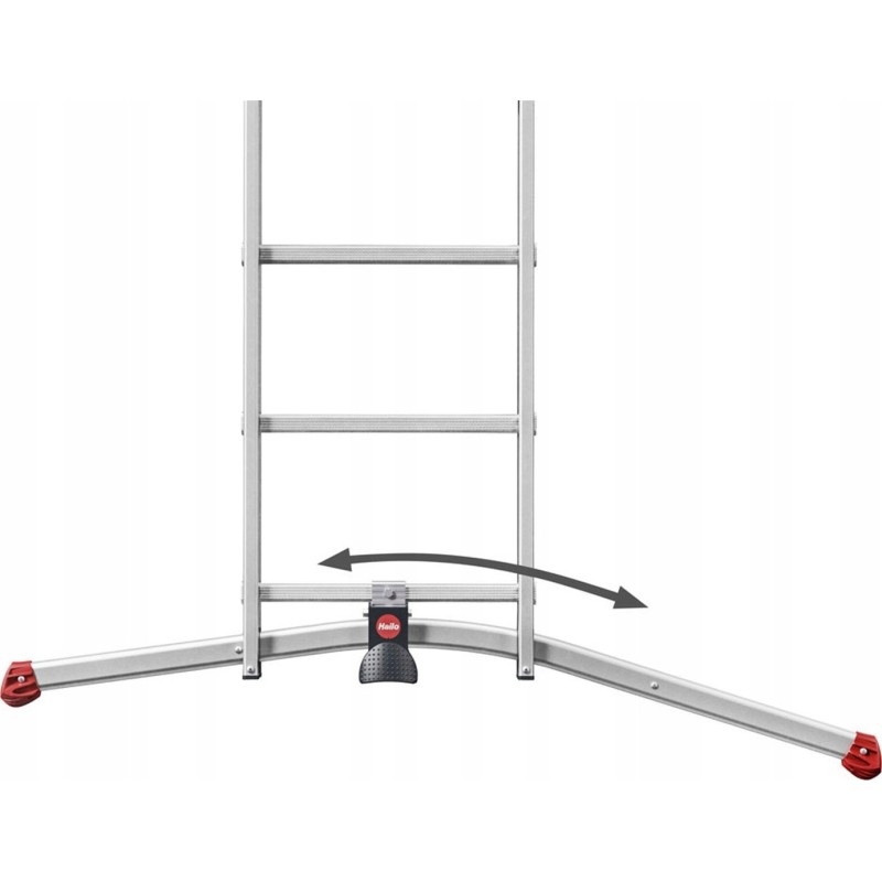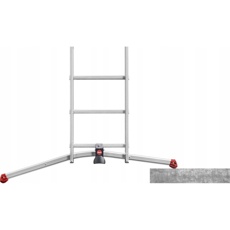 Dies ist eine 3-teilige Aluminiumleiter mit dem LOT-System, das den Aufstellbetrieb auf unebenem Untergrund ermöglicht.
