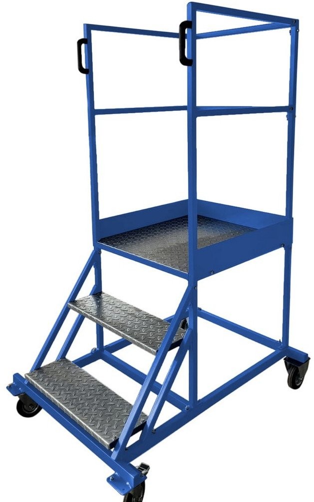 Fahrbare Arbeitsbühne aus Stahl mit 2 Stufen und Plattform – Sicheres Arbeiten in der Höhe