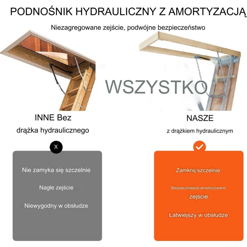 Sicherer und gedämpfter Abstieg: Ausgestattet mit einem speziellen hydraulischen Mechanismus, der plötzliche Stürze und Unfälle verhindert und einen kontrollierten Abstieg gewährleistet, der die Sicherheit Ihrer Familie garantiert. Nach dem Schließen passt sich die Leiter perfekt an, hinterlässt keine Spalten und sorgt für ein unauffälliges Erscheinungsbild.