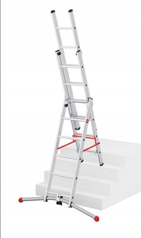 Die HAILO S100 PROFILOT ist eine dreiteilige Aluminium-Kombileiter mit LOT-System, das den Aufstellbetrieb auf unebenem Untergrund ermöglicht.