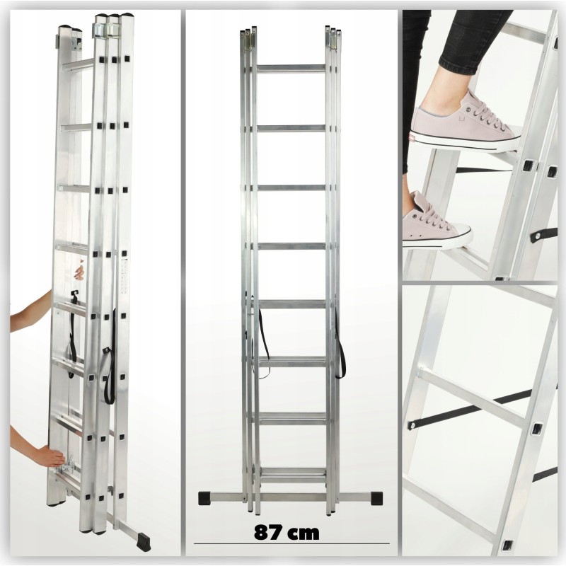 Die aus 3 Segmenten bestehende Aluminiumkonstruktion ist leicht und robust und gewährleistet somit Funktionalität und Sicherheit bei der Nutzung. Erfahren Sie, warum es sich lohnt, unsere multifunktionale Leiter anzuschaffen!