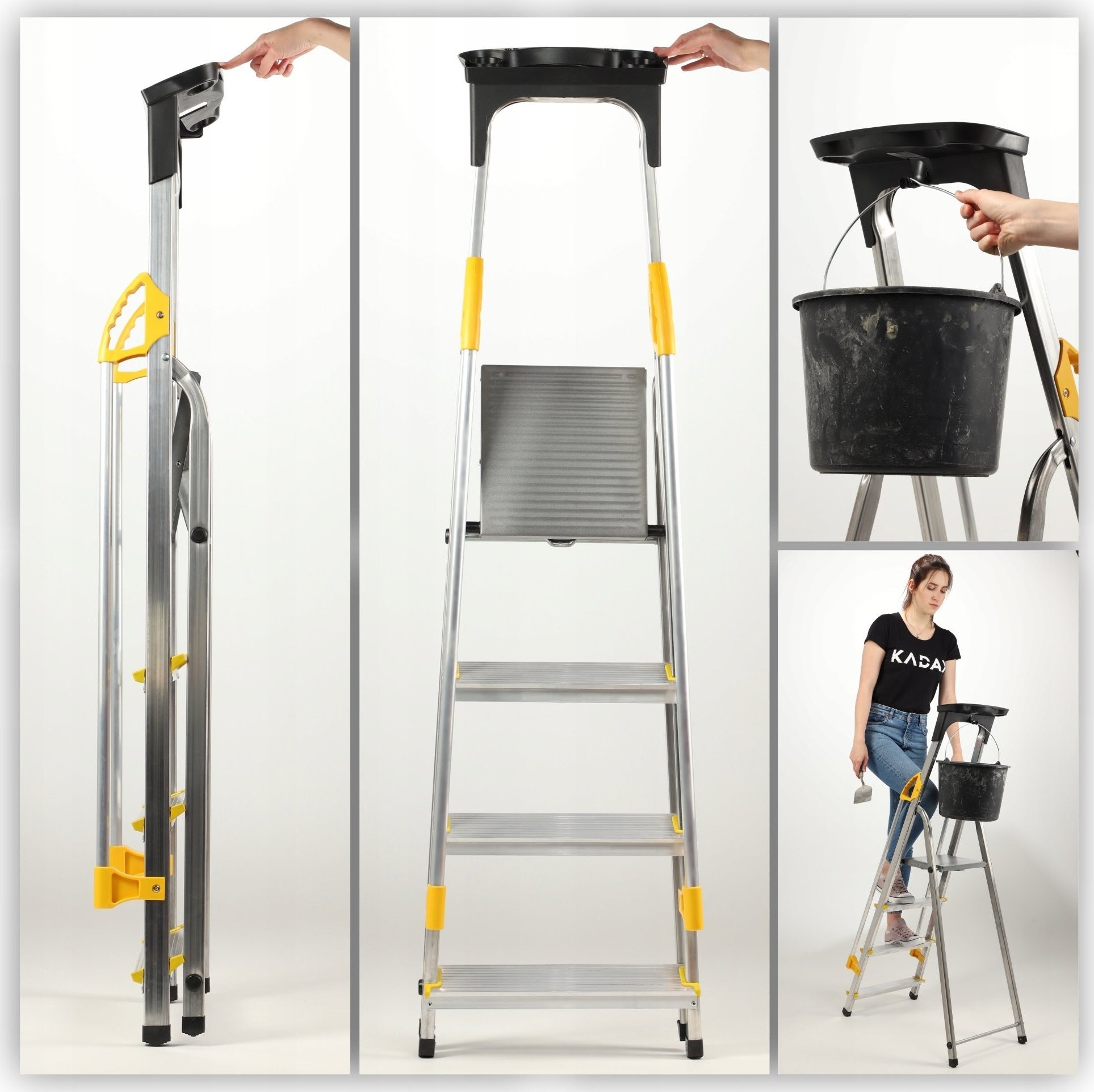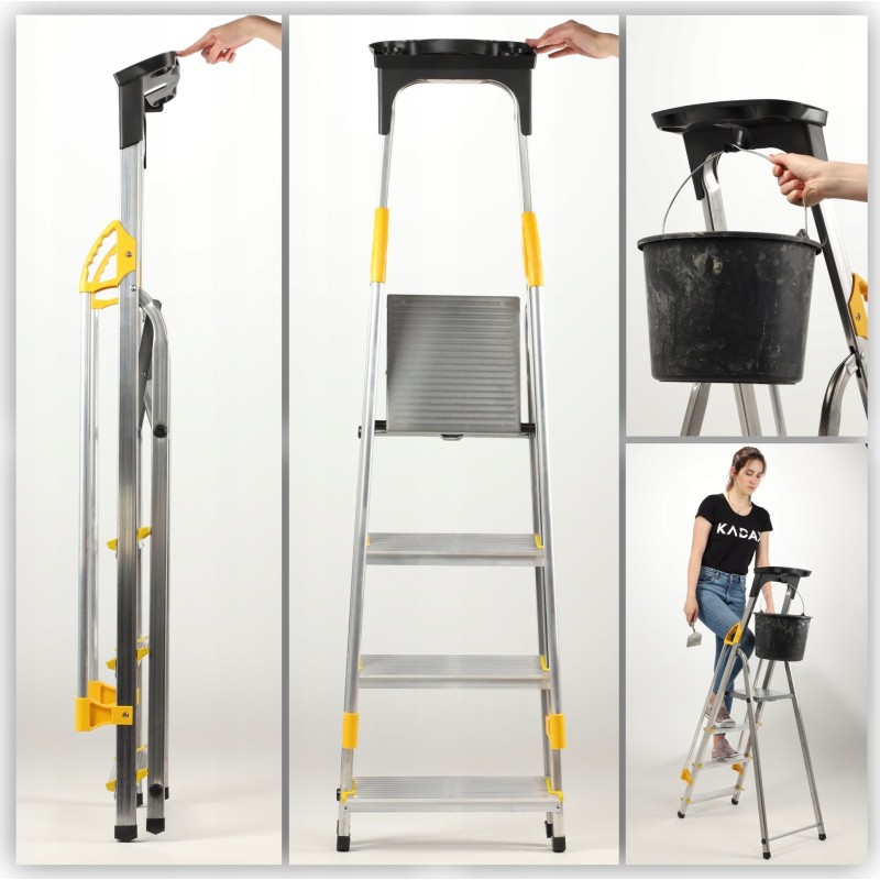 Funktionale Aluminiumleiter mit Ablage und Haken