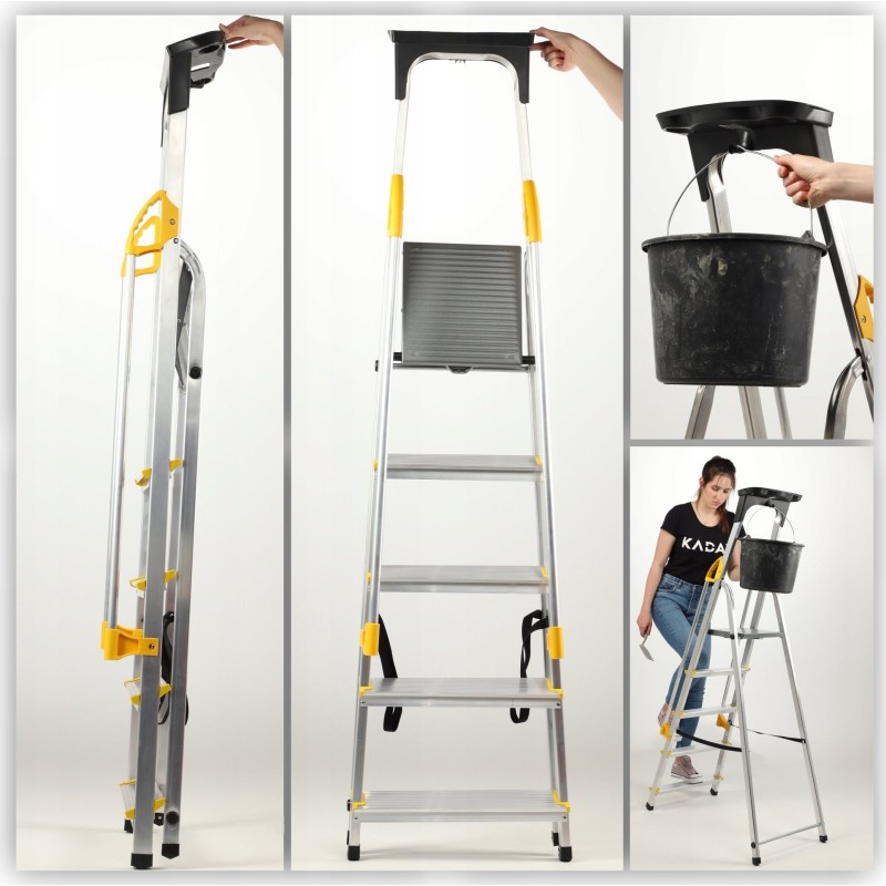 Funktionale Aluminiumleiter mit Ablage und Haken
