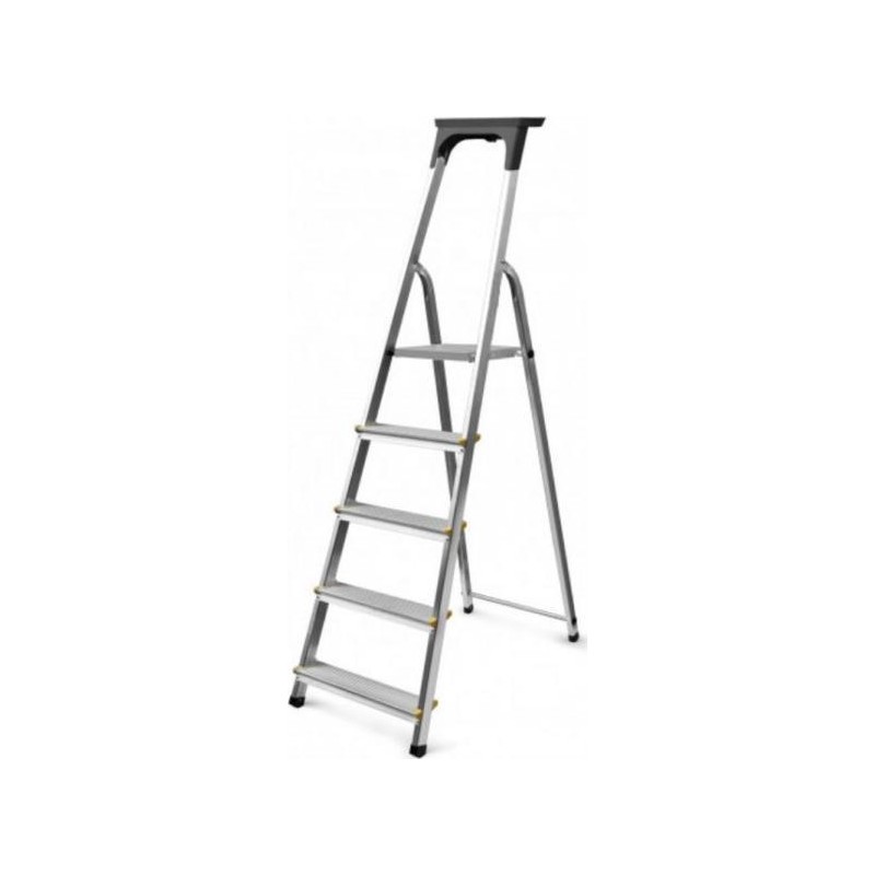 Diese Haushaltsleiter aus robustem und leichtem Aluminium ist für alltägliche Arbeiten im Haushalt sowie für gelegentliche Renovierungsarbeiten konzipiert. Stabile 7-stufige Konstruktion mit einseitigem Aufstieg Sicherer 60 cm langer Handlauf Breite Arbeitsplattform 25 cm x 26 cm Stabile Längsträger Geriffelte, vernietete Stufen mit Kunststoffkappen Spezielle rutschfeste Fußkappen sorgen für höchste Sicherheit Ergänzbar mit einer Werkzeugablage Bewährter polnischer Hersteller