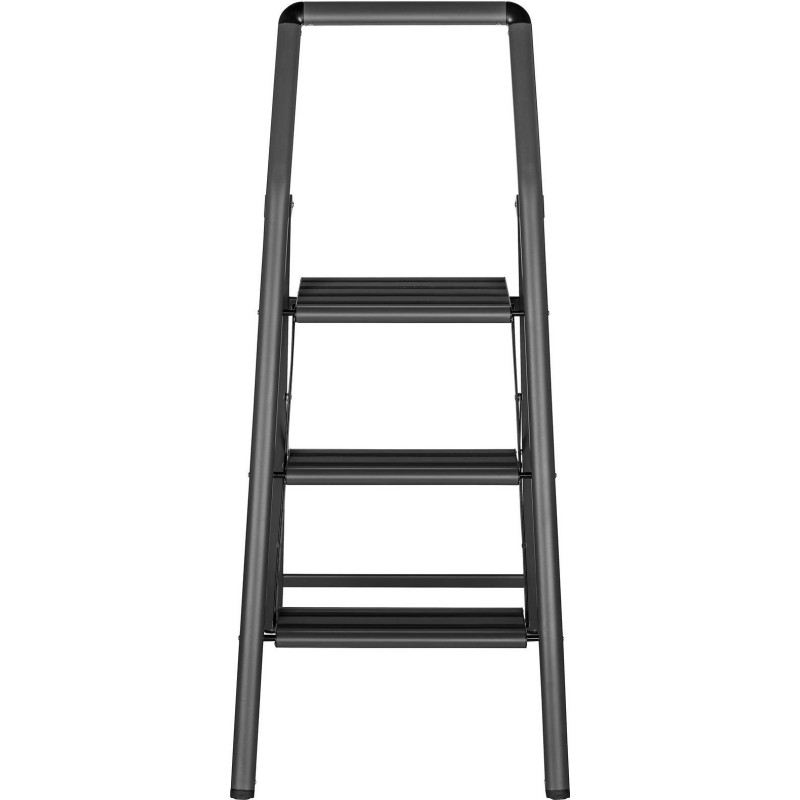 - Robust: Die Sicherheitsleiste an der obersten Stufe verhindert durch Einrasten ein unbeabsichtigtes Zusammenklappen. Der Handgriff sorgt für einen festen Halt. Bequemes Auf- und Absteigen garantieren die geriffelten, rutschfesten Gummistufen. Die stabile Leiter hält einer Belastung von bis zu 150 kg stand.
