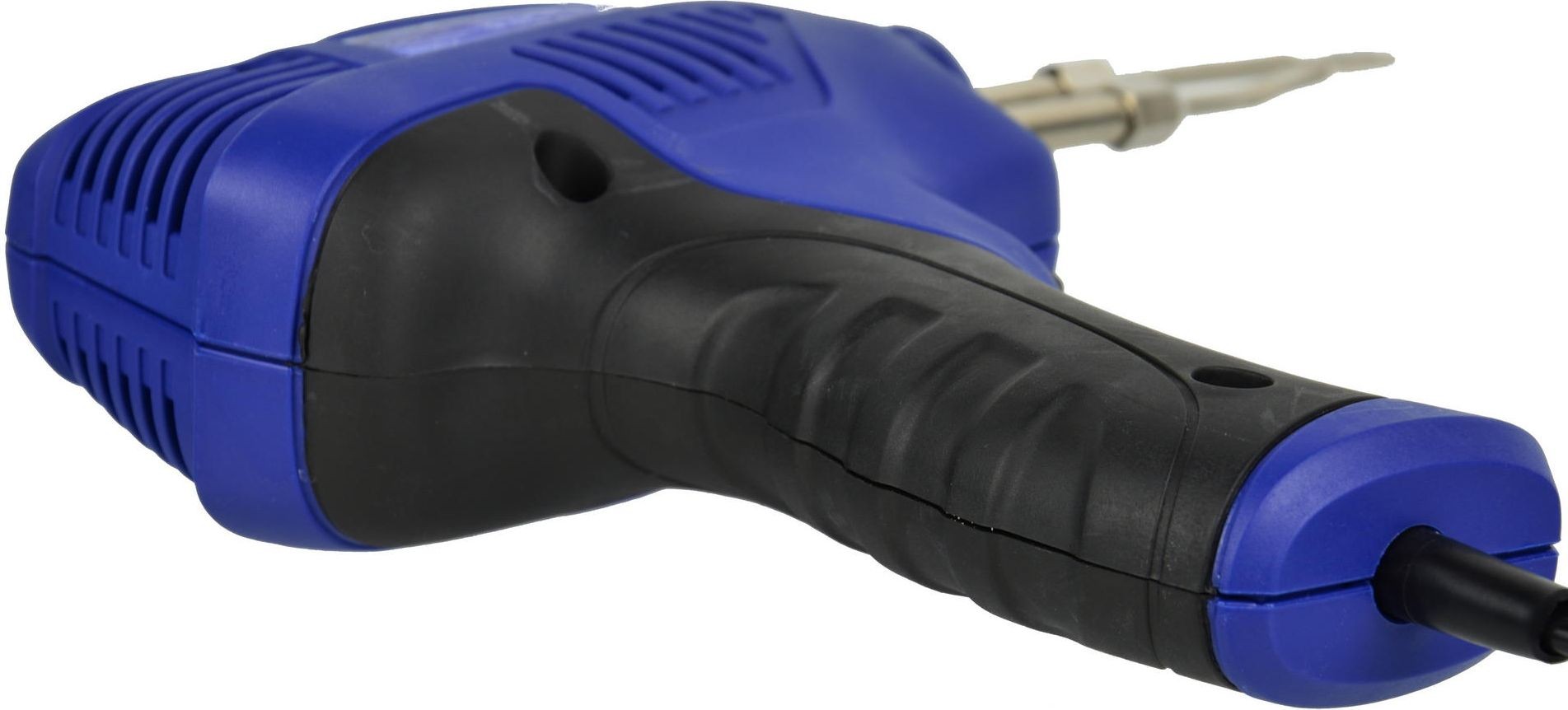 Transformator-Lötkolben mit 200 W Leistung. Dank der blitzschnell aufheizenden Spitze ist der Lötkolben bereits kurz nach dem Drücken des Auslösers (Schalter). Der Lötkolben dient zum Verbinden von Metallteilen mit einem niedrigschmelzenden Bindemittel, z. B. Zinn. Das Gerät verfügt über einen 3-stufigen Temperaturregler, wodurch es sich hervorragend zum Schneiden von Kunststoff oder zum Gravieren in Holz eignet. Darüber hinaus verfügt es über eine LED, die den Lötbereich beleuchtet, was den Arbeitskomfort erheblich verbessert. Das Gehäuse des Lötkolbens besteht aus strapazierfähigem, hochwertigem Kunststoff. Produktmerkmale: 3 Temperaturstufen, punktuelle Beleuchtung mittels LED, ergonomischer Griff, Leistung 200 W, Gehäuse aus strapazierfähigem Kunststoff, schnell aufheizbare Spitze. Technische Daten: Spannung: 230–240 V / 50 Hz Leistung: 200 W Temperaturstufen: A: 70–200 °C – Schneiden von Kunststoff B: 200–350 °C – Löten C: 350–500 °C – Brandmalerei auf Holz
