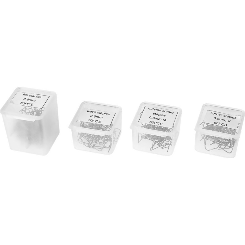 Das Set enthält 200 Klammern in vier verschiedenen Formen, was eine flexible Anpassung an die jeweiligen Reparaturbedürfnisse ermöglicht. So kann der Anwender die passende Klammerform für die jeweilige Aufgabe auswählen, was die Arbeitseffizienz erhöht.