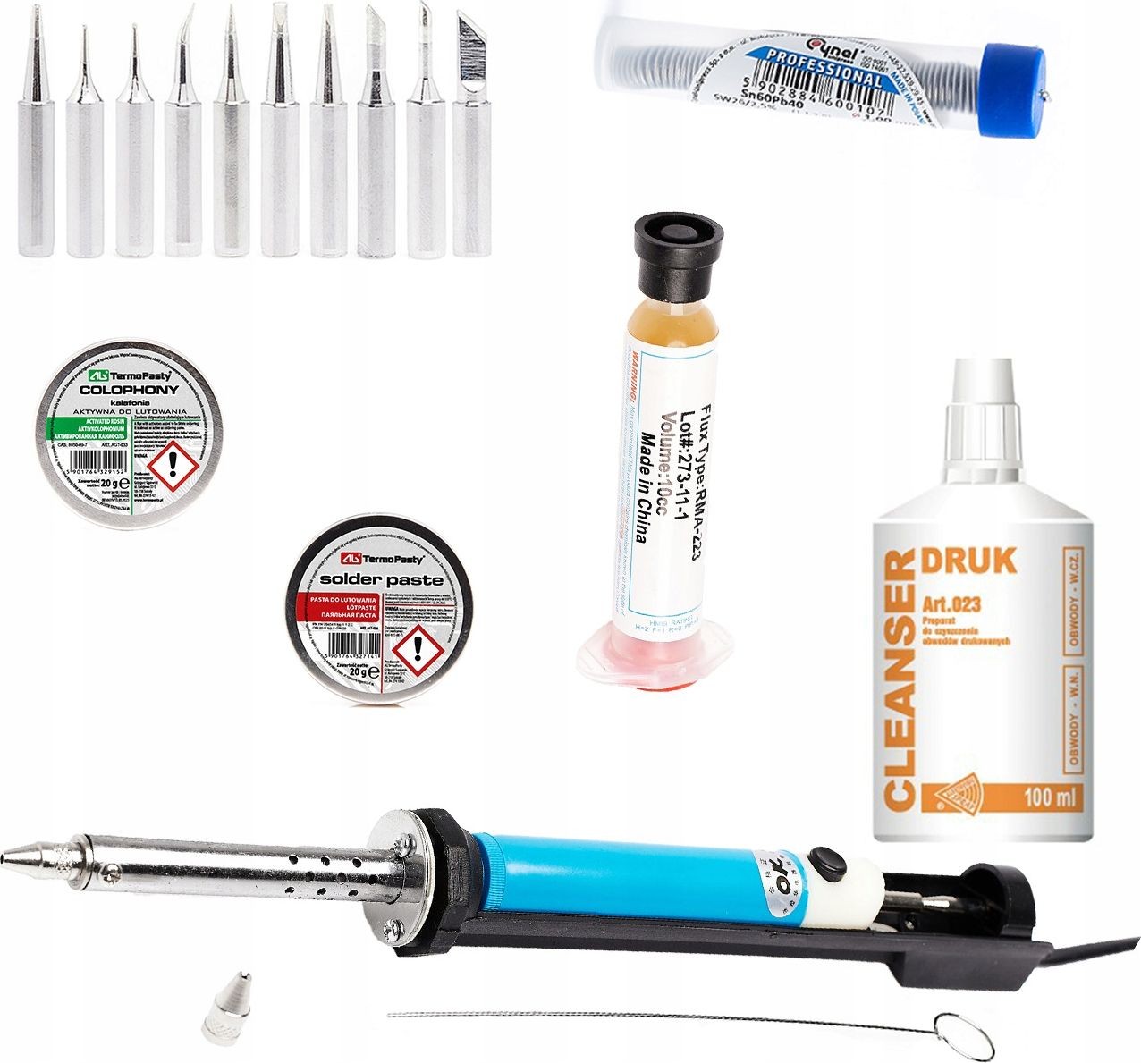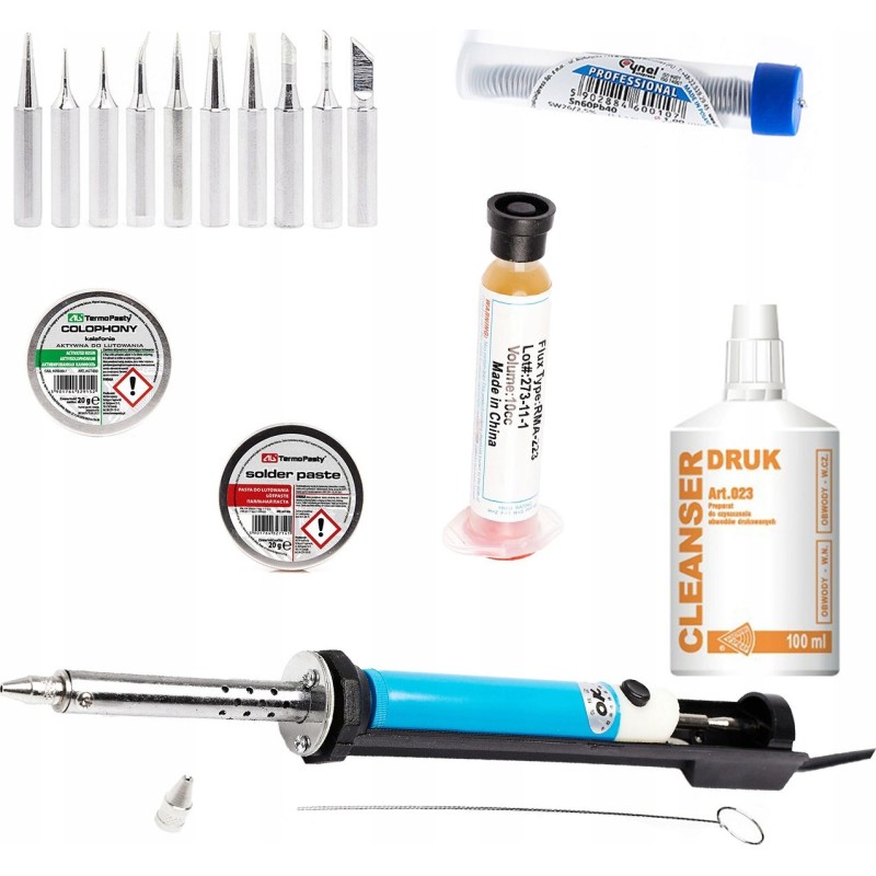 Ein Set an Lötzubehör, das Sie ganz nach Ihren Bedürfnissen zusammenstellen können. Sie erhalten 10 Lötspitzen (+ 1 bereits auf den Lötkolben aufgesetzte Spitze) mit universellen Spitzen – auf der Grundlage langjähriger Erfahrung haben wir diejenigen zusammengestellt, die für alle Anwendungen beim Löten am nützlichsten sind, 2 Flussmittel, die das Löten erleichtern, sowie einen elektrischen Absauger, der das Lot selbst erhitzt. Sie beginnen mit dem Löten, möchten Ihre Werkstatt mit zusätzlicher Ausrüstung ausstatten oder sind bereits ein erfahrener Elektroniker – dieses Set ist für jeden geeignet.