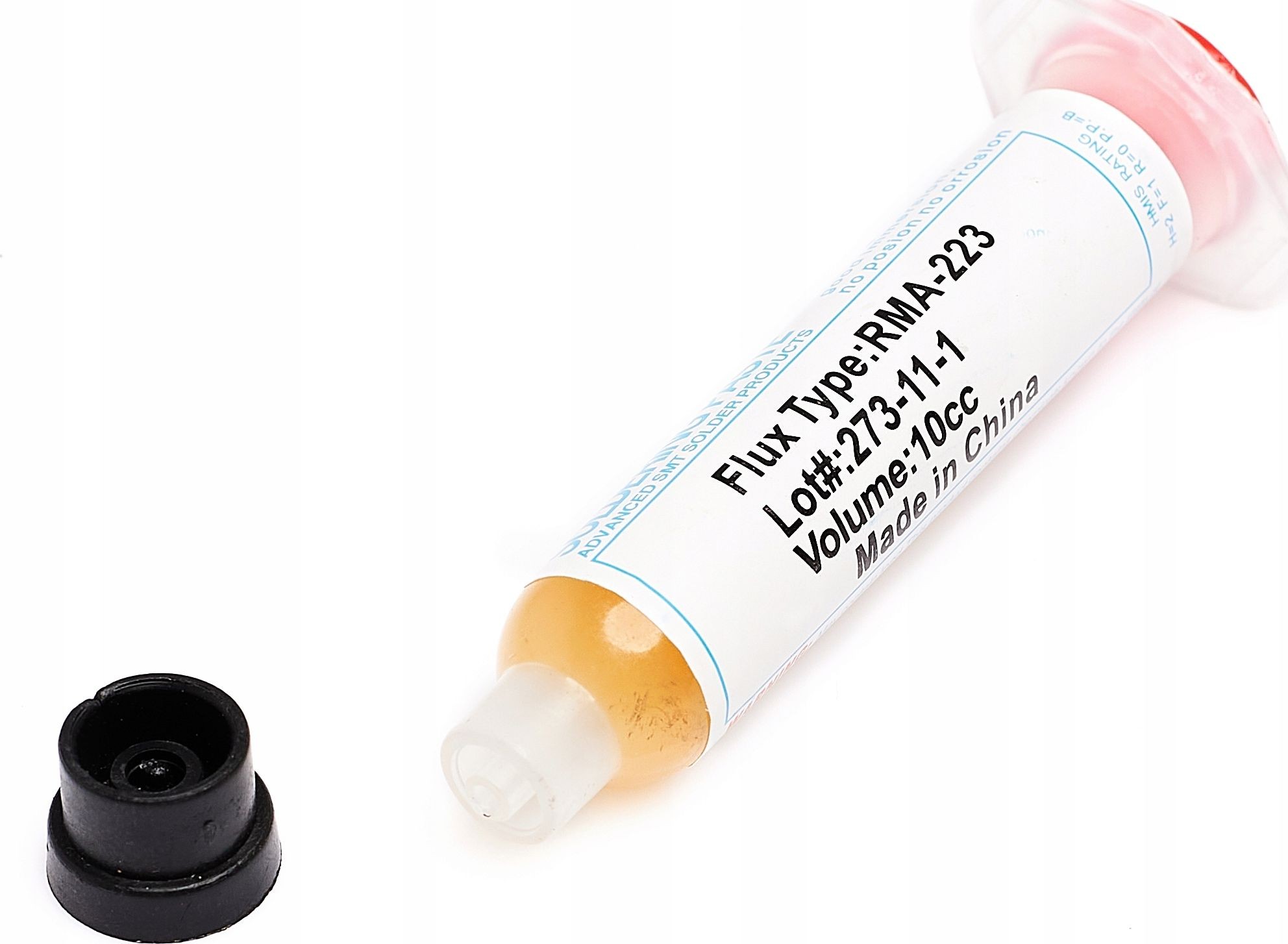 Hochwertiges Lötflussmittel, leicht zu verteilen, mit hoher Intensität und Benetzbarkeit der Lötfläche. Beeinträchtigt die Eigenschaften von IC- und PCB-Bauteilen nicht und erfordert keine Reinigung nach dem Lötvorgang. (Es handelt sich um ein NO-CLEAN-Flussmittel.) Es hat eine gelartige Konsistenz, was die Anwendung erleichtert. Das Flussmittel wird auch zur Reparatur beschädigter Bälle sowie zum Ein- und Auslöten von z. B. BGA-Bausteinen in Mobiltelefonen verwendet.