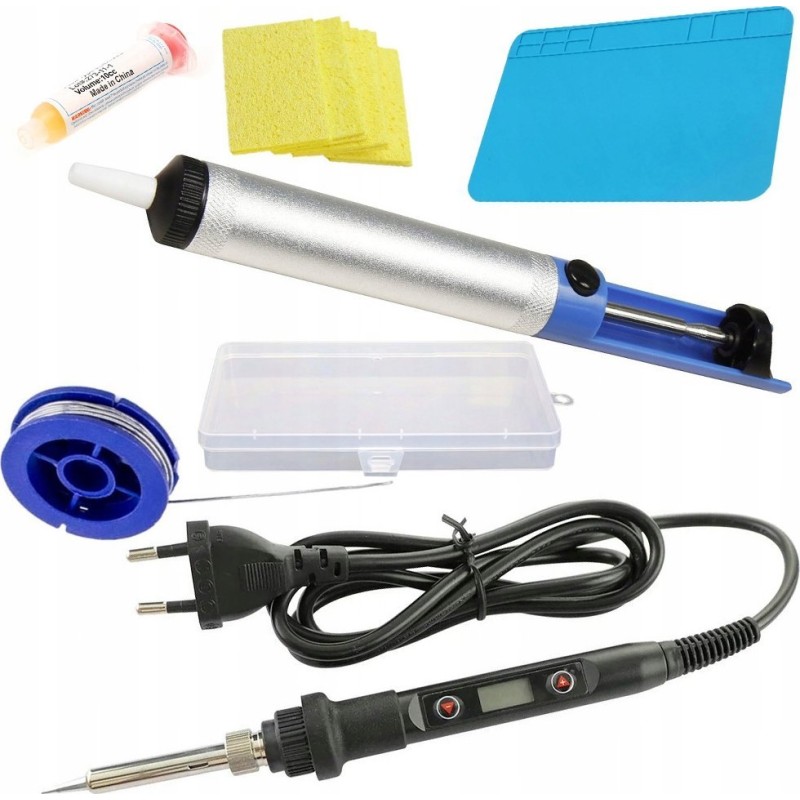 Rosfix Lötkolben mit Display, Lötmatte, Zinn, Absaugvorrichtung, Aufbewahrungsbox, Schwamm, Flussmittel