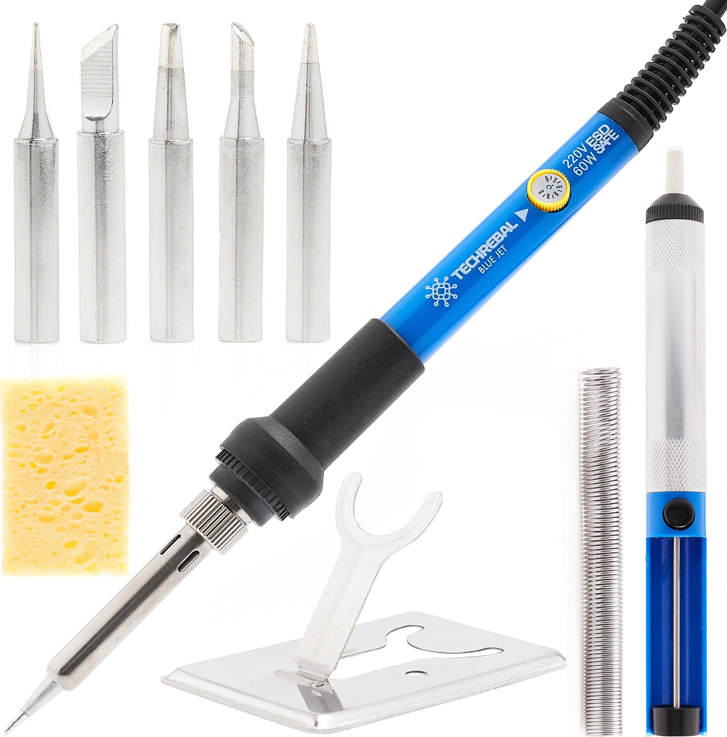 10-in-1-Set: Präzisionslötkolben Techrebal „Blue Jet“ TBJ60W mit 60-W-Potentiometer im Etui + 50 g Lötzinn!