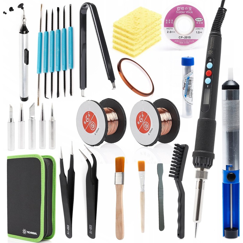 Präzisions-Lötpaste 60W Techrebal „Red Warrior“ TBS60W mit Display + Großes Set bestehend aus 34 Lötzubehörteilen