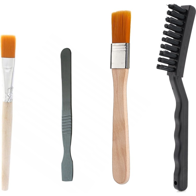 Die Pinsel bestehen aus strapazierfähigen Materialien, die eine hervorragende Flexibilität und Beständigkeit gegen hohe Temperaturen gewährleisten. Ihre feinen Borsten ermöglichen das präzise Auftragen von Lötpaste oder die Reinigung der Oberfläche vor dem Löten. Die ergonomischen Griffe der Pinsel sorgen für Komfort und Präzision. Im Set sind zwei Pinselgrößen enthalten, sodass das Werkzeug an die Größe der zu lötenden Bauteile angepasst werden kann. Die Borstenbreite beträgt 10 cm bzw. 8 cm. Ideal für Profis und Elektronik-Bastler.