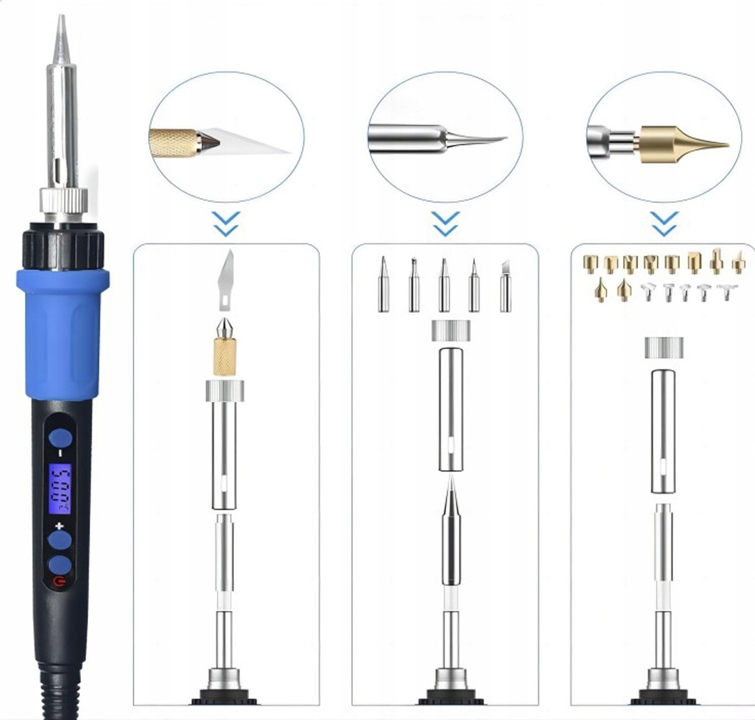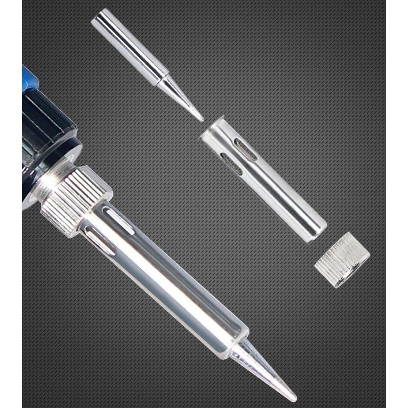- Dank der 5 mitgelieferten austauschbaren Spitzen kannst du die Lötspitze schnell an die jeweilige Aufgabe anpassen.