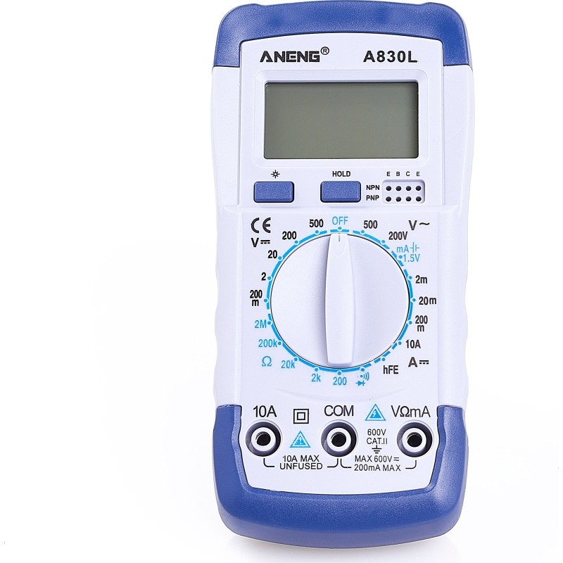 Das Multimeter Aneng A830L ist mit einem Diodentester, einem Durchgangsprüfer, einer Hold-Funktion und einer LCD-Hintergrundbeleuchtung ausgestattet.