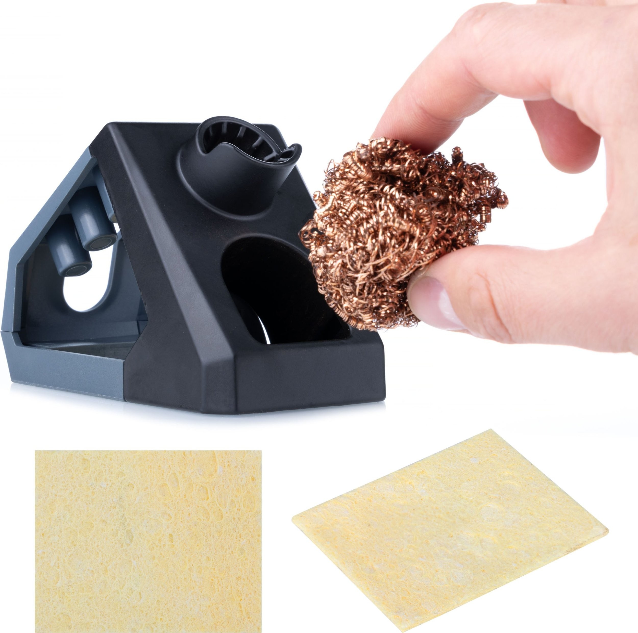 4️⃣ Halterung für den Lötkolben mit Schwamm zur Reinigung der Spitze