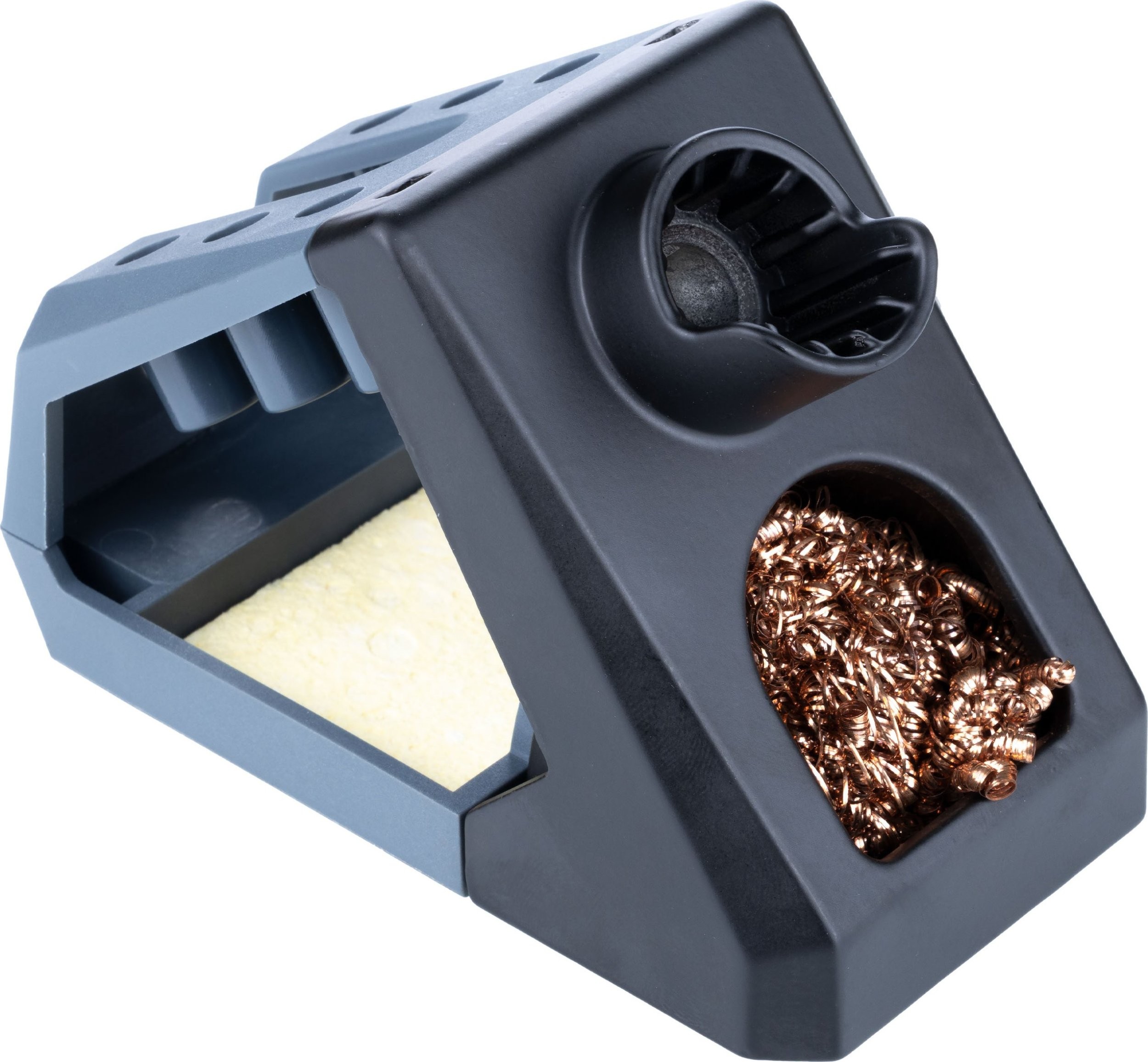 4️⃣ Halterung für den Lötkolben mit Schwamm zur Reinigung der Spitze