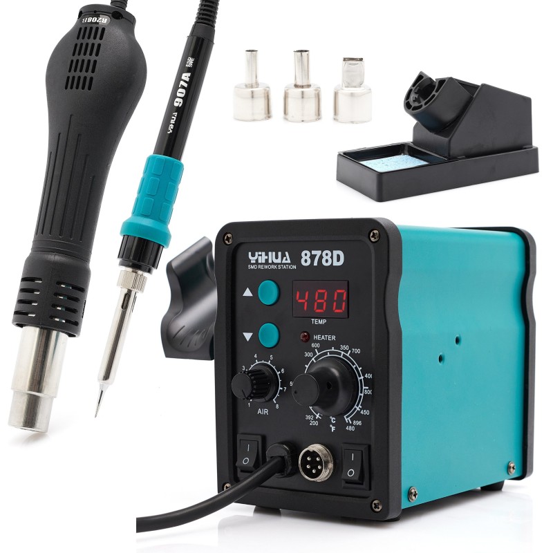 Die Lötstation 878D bietet eine 2-in-1-Funktionalität, was bedeutet, dass sie sowohl als Lötkolben als auch als Heißluftlötgerät verwendet werden kann. Diese Vielseitigkeit macht sie zur idealen Lösung für verschiedene Anwendungen.