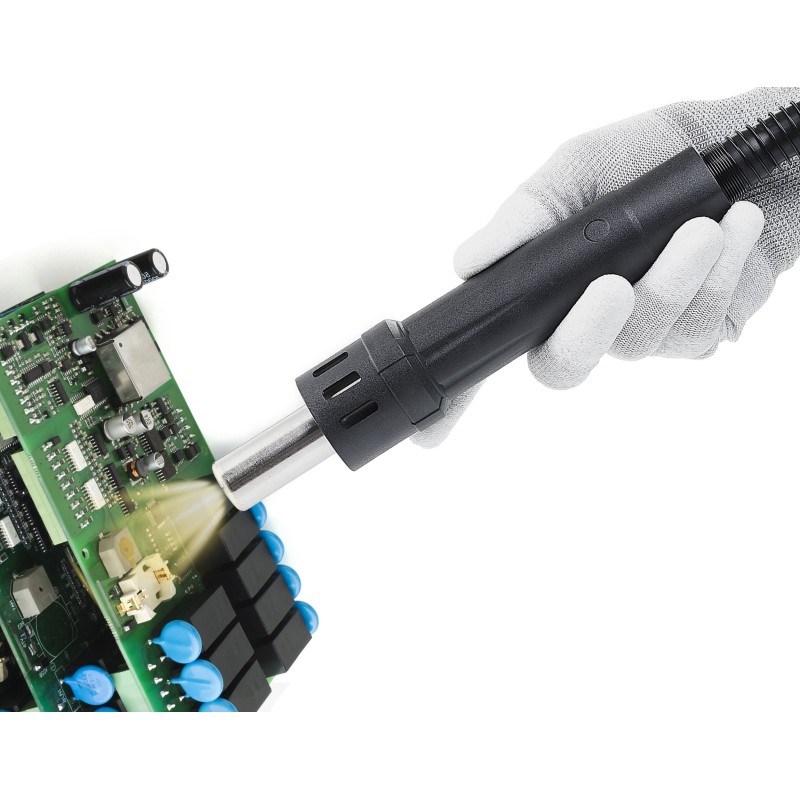 Das Gerät ist mit zwei Displays ausgestattet, die eine einfache Überwachung der Betriebsparameter wie Temperatur und Gebläseleistung ermöglichen. Dadurch können Anwender die Einstellungen jederzeit anpassen, was den Komfort und die Präzision der Arbeit erhöht.