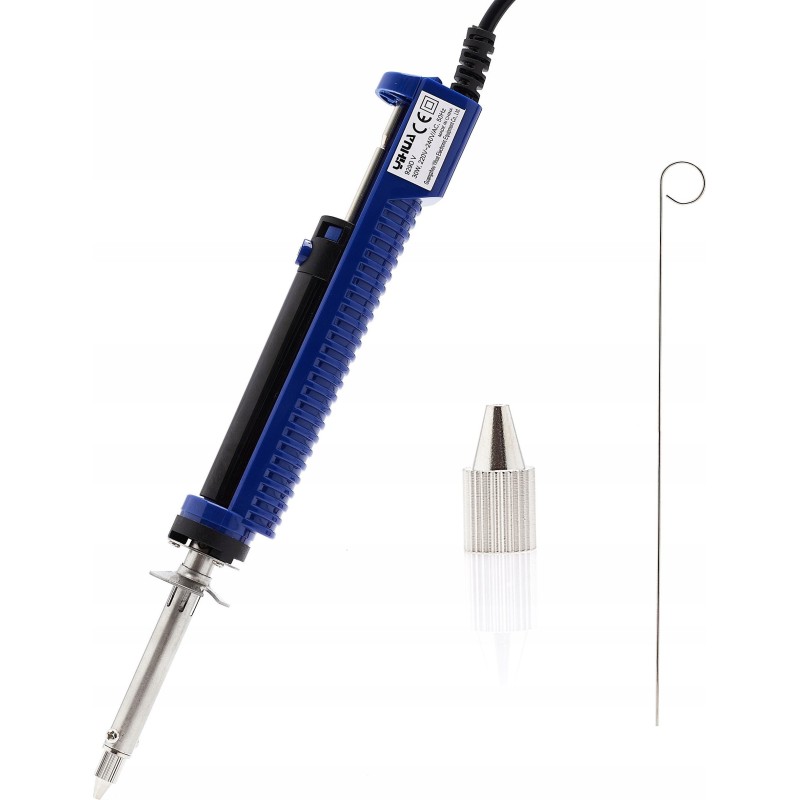 Professioneller Lötabsauger zum Entfernen von Zinn; das Gerät heizt sich sehr schnell auf die für die Arbeit erforderliche Temperatur auf. Die robuste Konstruktion ermöglicht ein sehr effektives Arbeiten mit einer Hand. Ein sehr nützliches Gerät, das das Auslöten von elektronischen Bauteilen erleichtert.