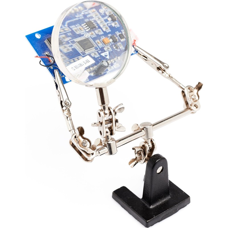 1️⃣5️⃣Montagehalterung – dritte Hand mit Lupe