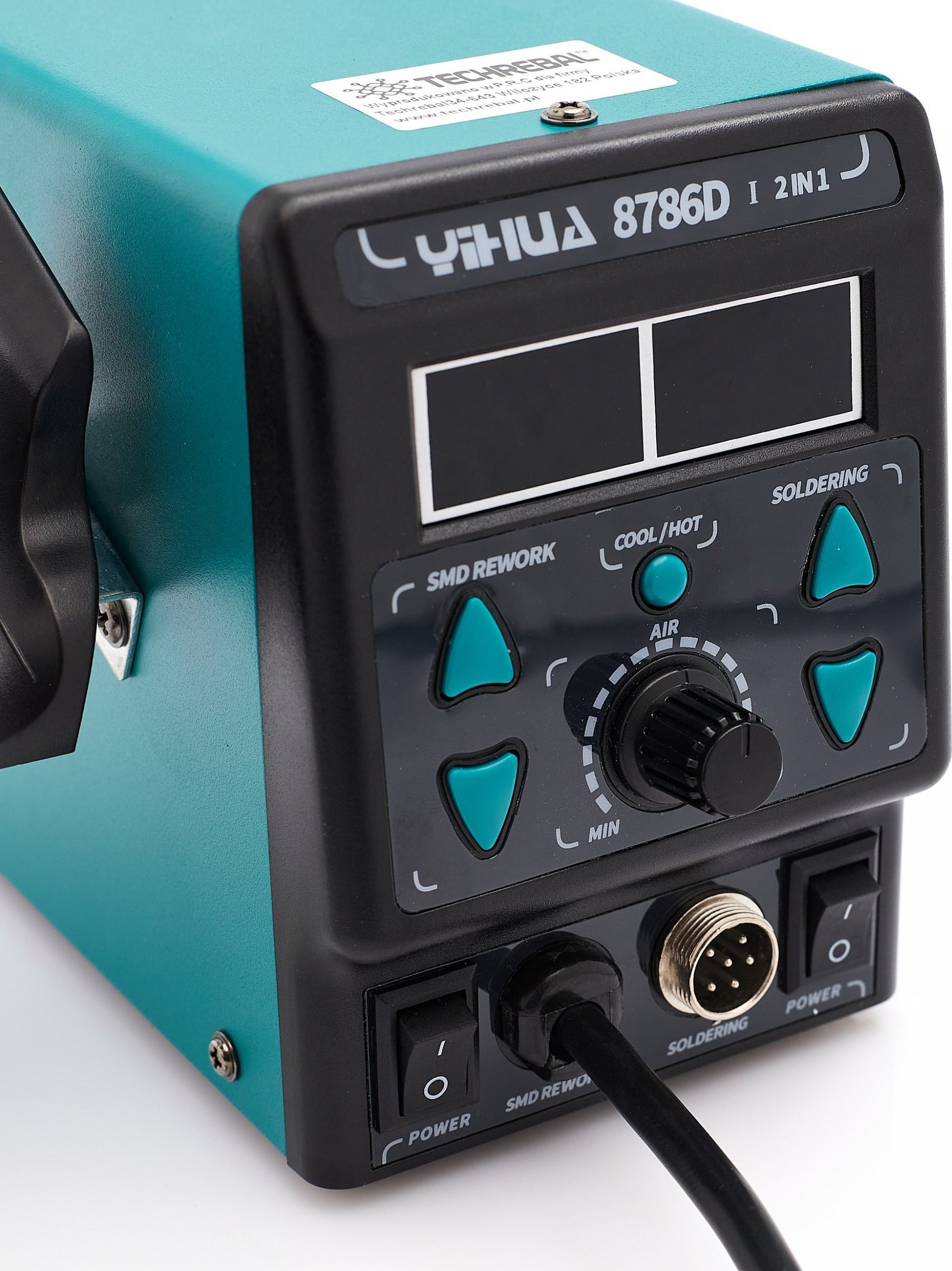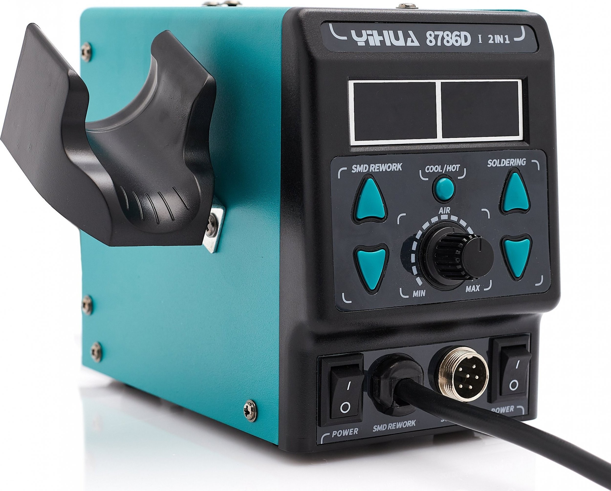 ⚡ Zwei gut lesbare Displays an der Yihua 8786D-I erleichtern die Arbeit erheblich und zeigen die tatsächliche Temperatur sowohl des Lötkolbens als auch der Heißluftpistole an.