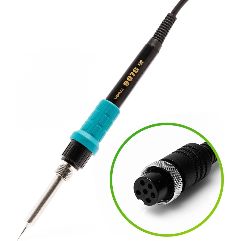 - Das Set enthält den Lötkolben 907G, Ständer und Heißluftdüsen