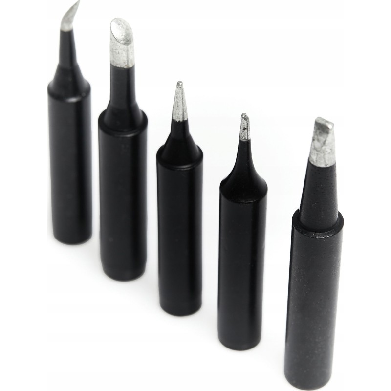 Lötspitzen Black 900M, 5 Stück – Die Long-Life-Lötspitzen verfügen über eine beschichtete Oberfläche, wodurch sie widerstandsfähiger gegen Oxidation sind, eine gute Wärmeleitfähigkeit aufweisen und sich durch eine lange Lebensdauer auszeichnen. Wir haben ein einzigartiges Set zusammengestellt, mit dem Sie die Lötspitze an jede Art von Arbeit anpassen können. Sie erhalten das auf dem nebenstehenden Foto abgebildete Set an Lötspitzen.