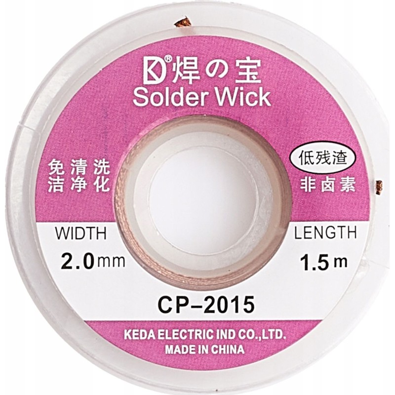 Geflecht 2 mm x 1,5 m – Das Absaugband besteht aus einem Geflecht aus feinen Drähten und ist die ideale Lösung zum Entfernen von Zinn von Lötstellen mittels Adhäsionsverfahren. Es ist bei allen Reparaturen in Elektronikwerkstätten unverzichtbar.