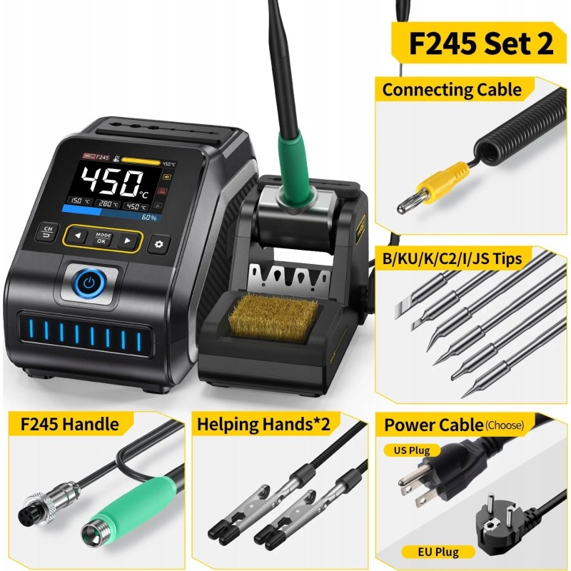 Lötstation FNIRSI DWS-200 200 W SET MIT 9 LÖTSPITZEN + 2 GRIFFEN F210/F245
