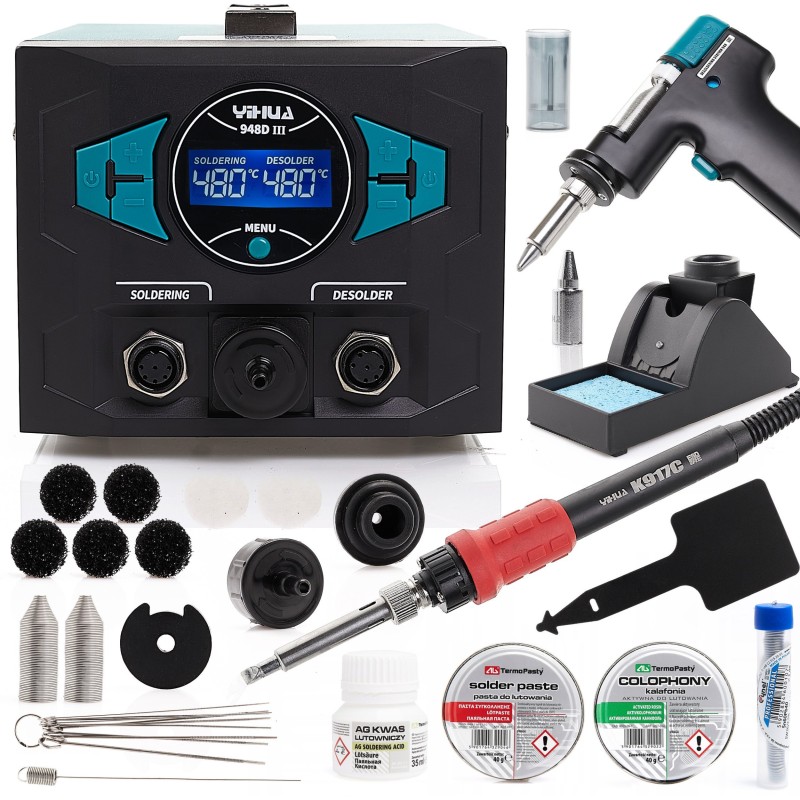 Löt- und Entlötstation Yihua 948D-III, Kolophoniumpaste, 2x Zinn, Säure
