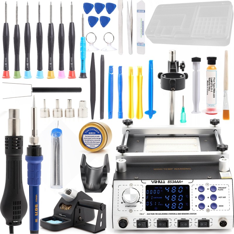 Set: 3-in-1-Lötstation Yihua 853AAA + 25-in-1-GSM-Werkzeugsatz + Zubehör