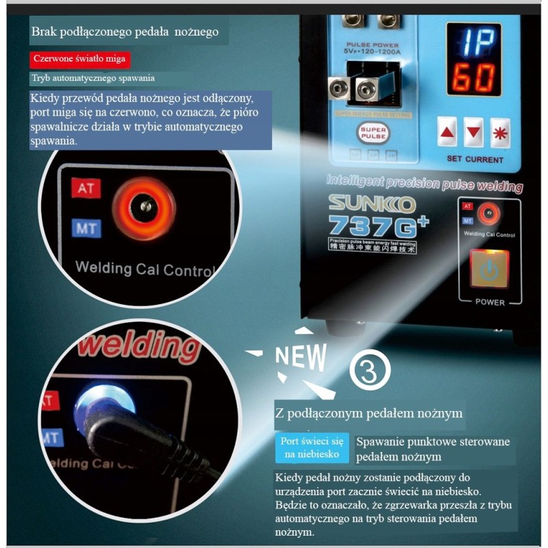 SUNKKO 737G+ Schweißgerät mit zwei Impuls-Schweißmodi.