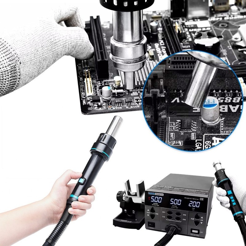 ✅ Die Temperaturregelung der Heißluft ermöglicht die vollständige Kontrolle über die Betriebsparameter, was Präzision bei der Arbeit mit empfindlichen Bauteilen gewährleistet.