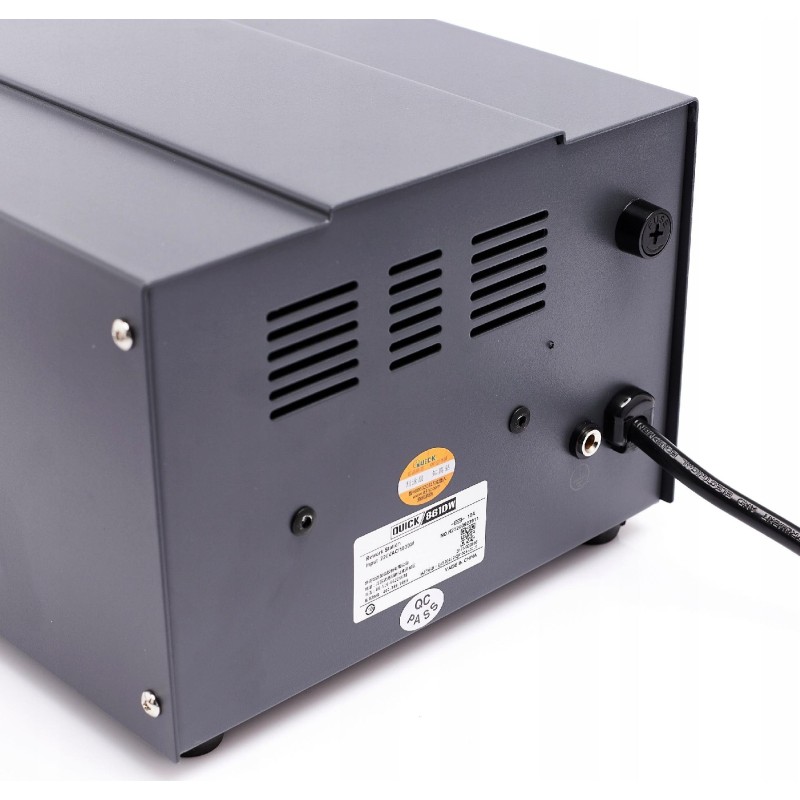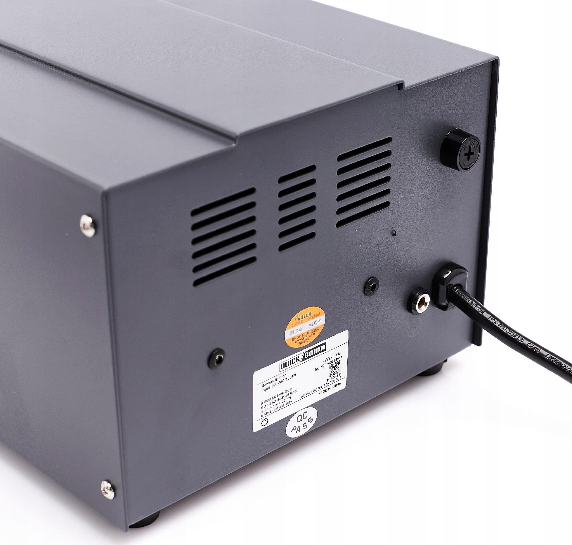 - Lötstation Quick 861DW ESD mit integriertem Lötkolben an einem flexiblen Kabel und integriertem Netzkabel