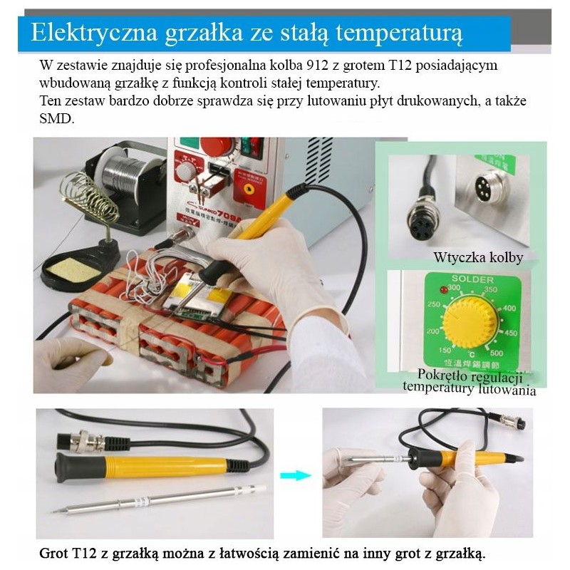 12. Die T12-Spitze mit integriertem Heizelement garantiert schnelles Löten und eine längere Lebensdauer.