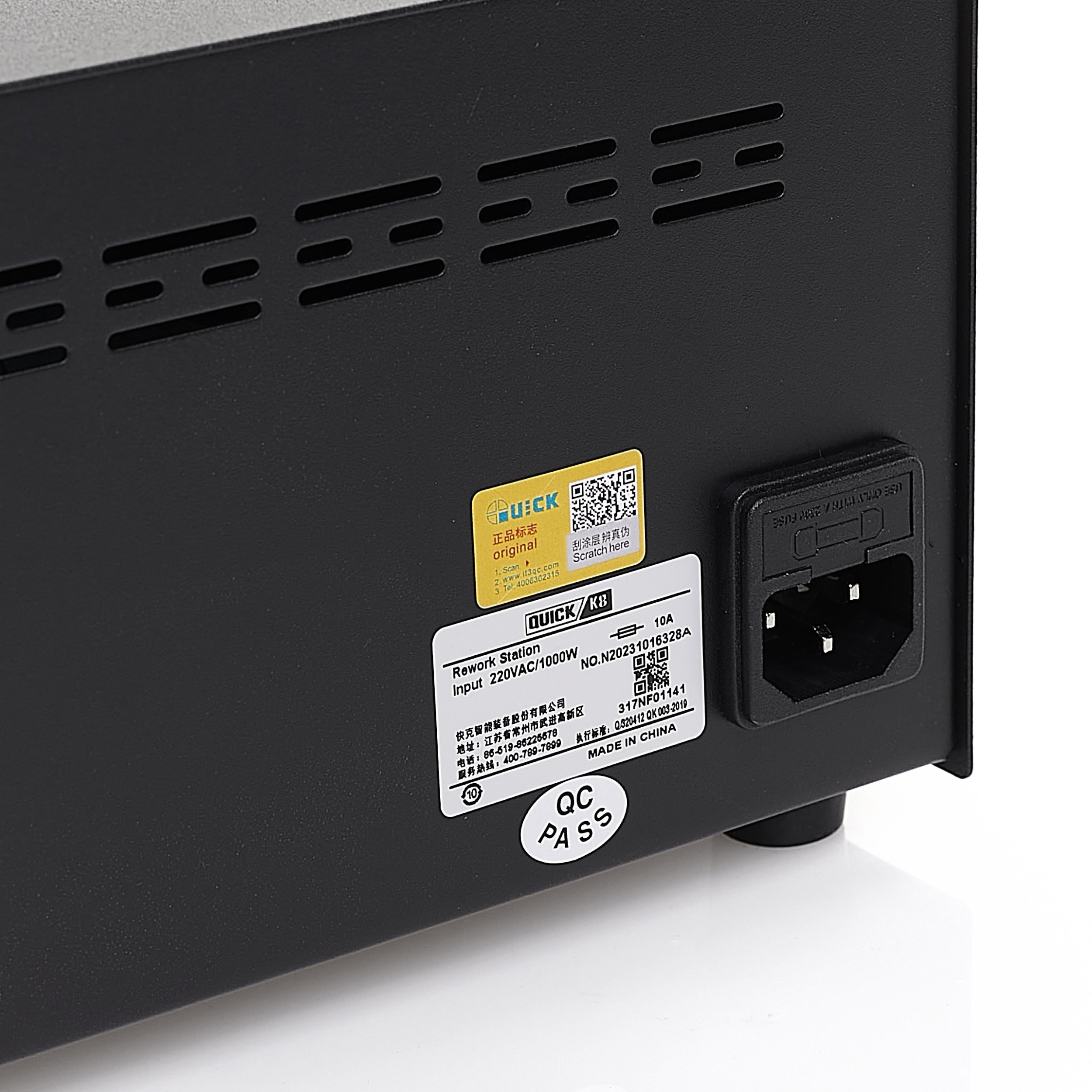 - Im Lieferumfang enthalten: Lötstation QUICK K8, Halterung für den Lötkolben, 6 austauschbare Düsen, Erdungskabel, Netzkabel