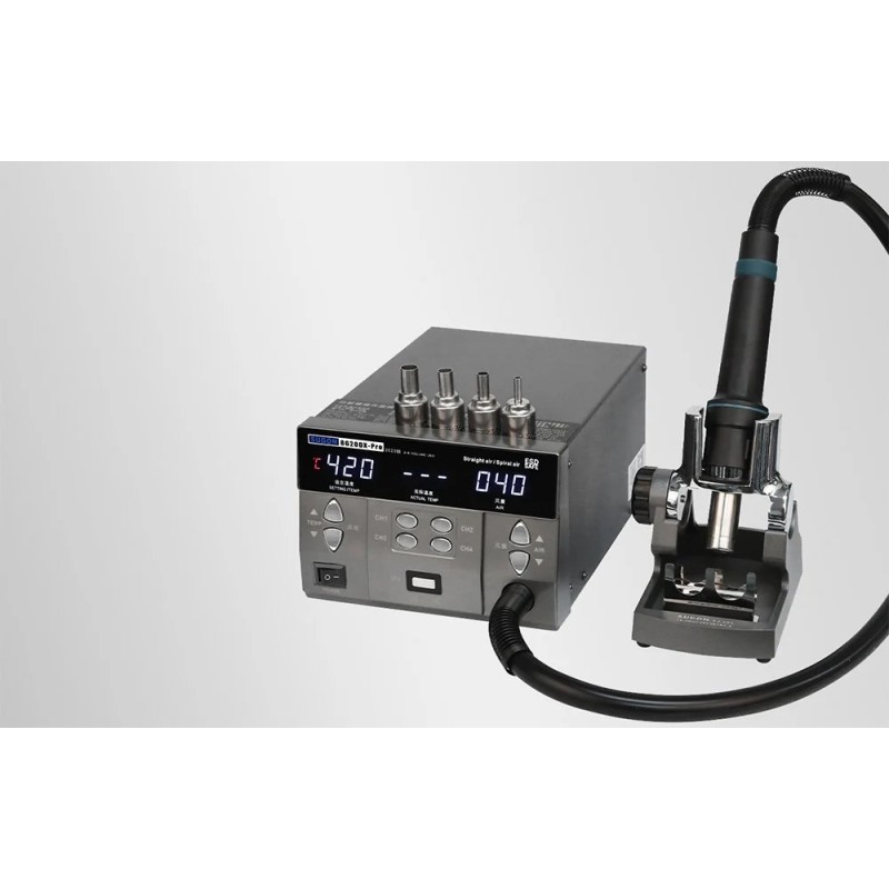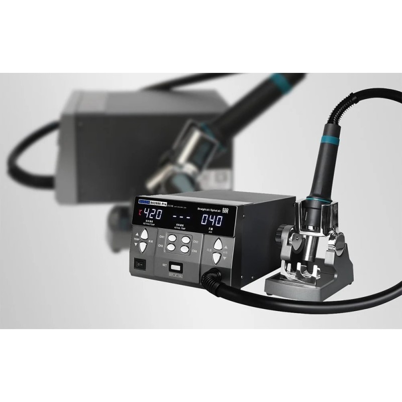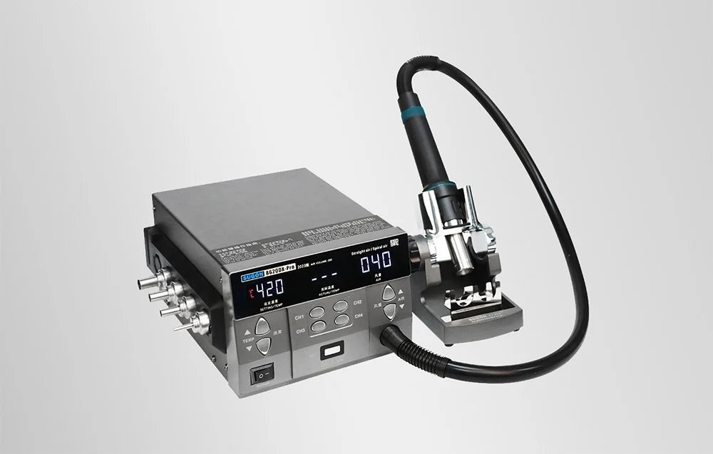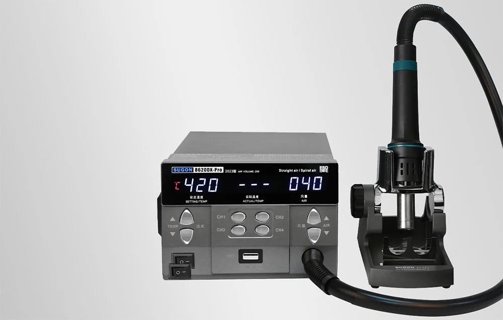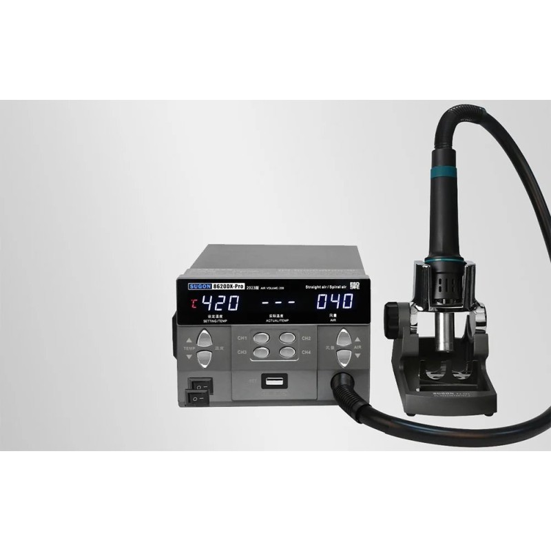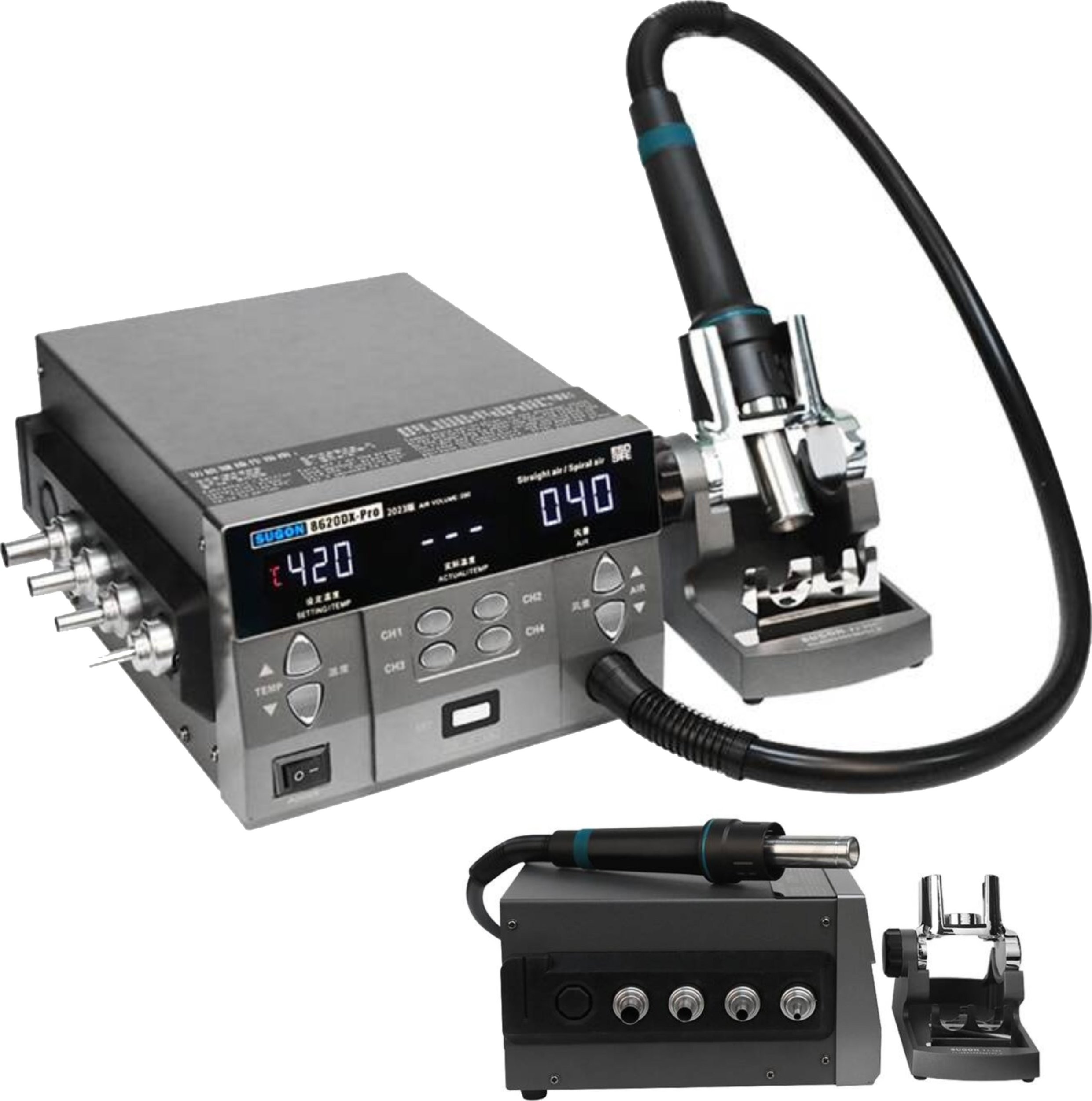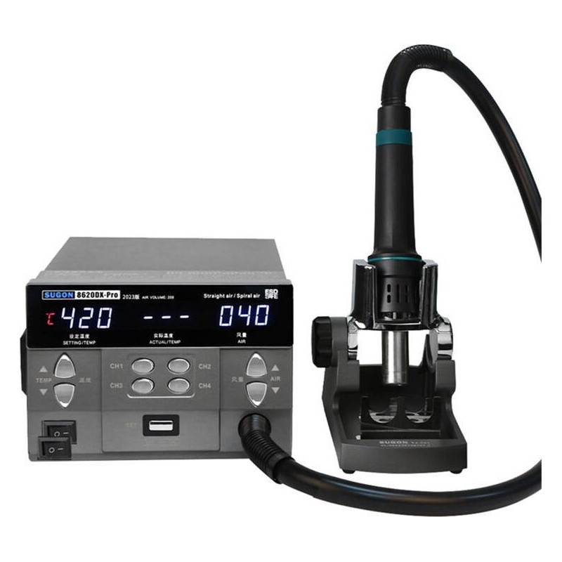 Ausgestattet mit einem leistungsstarken 1300-W-Motor bietet die SUGON 8620DX Pro einen beeindruckenden Luftdurchsatz von bis zu 200 l/min. Dank dieser Leistung bewältigt das Gerät mühelos eine Vielzahl von Bauteilen, von empfindlichen SMD-Baugruppen bis hin zu größeren Komponenten.
