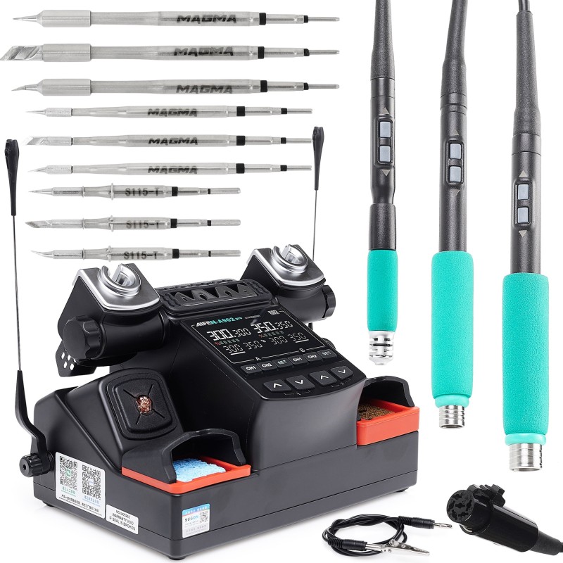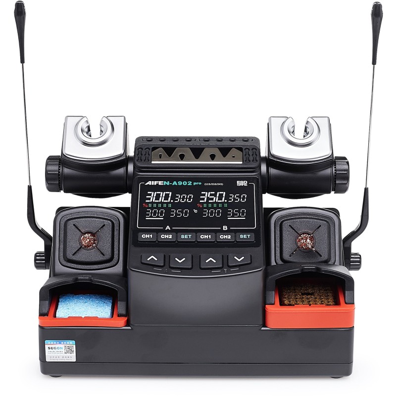 Die Lötstation Aifen A902 Pro ist ein modernes 3-in-1-Gerät, das traditionelles Löten, Heißluft und präzise Temperaturregelung vereint. Dank zweier unabhängiger Kanäle hat der Anwender die Möglichkeit, zwei Lötspitzen gleichzeitig zu nutzen, was die Effizienz und den Arbeitskomfort erheblich steigert. Dies ist eine hervorragende Lösung sowohl für Profis als auch für Hobbybastler, die Wert auf Qualität und Genauigkeit beim Löten legen.