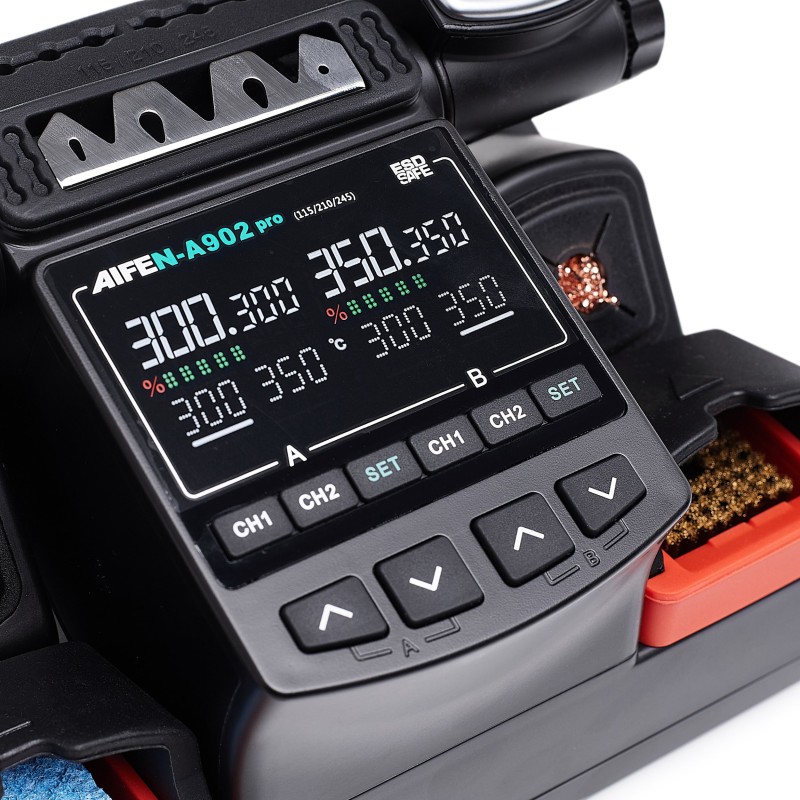 Der zweikanalige Aufbau der Lötstation Aifen A902 Pro ermöglicht die gleichzeitige Nutzung von zwei Lötspitzen, was die Arbeitseffizienz deutlich steigert. Anwender können frei zwischen verschiedenen Löttechniken wechseln, ohne die Arbeit zu unterbrechen, was äußerst komfortabel ist und Zeit spart.