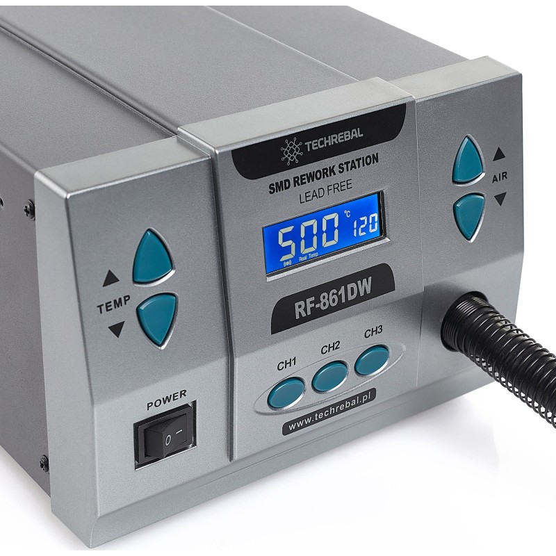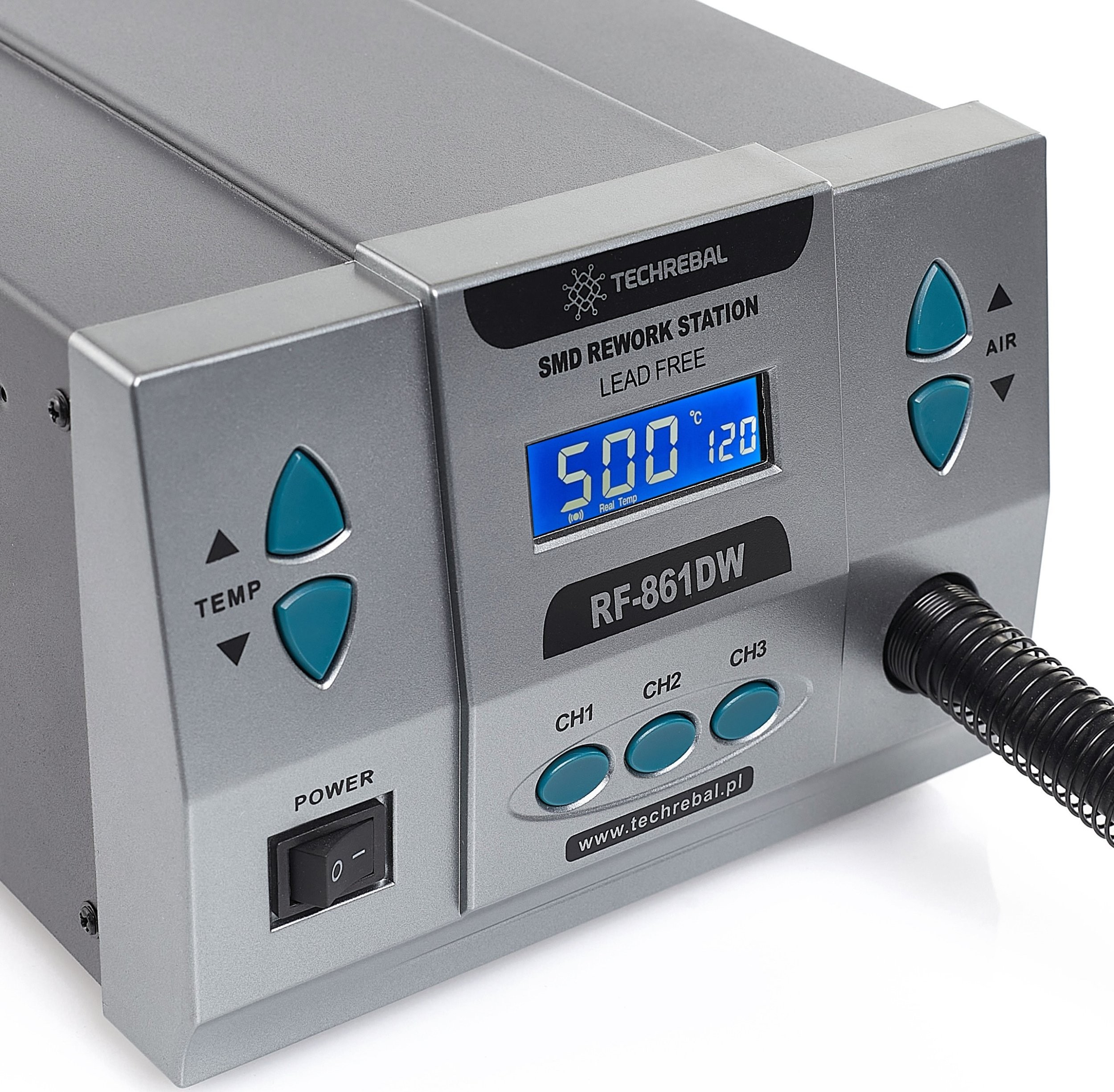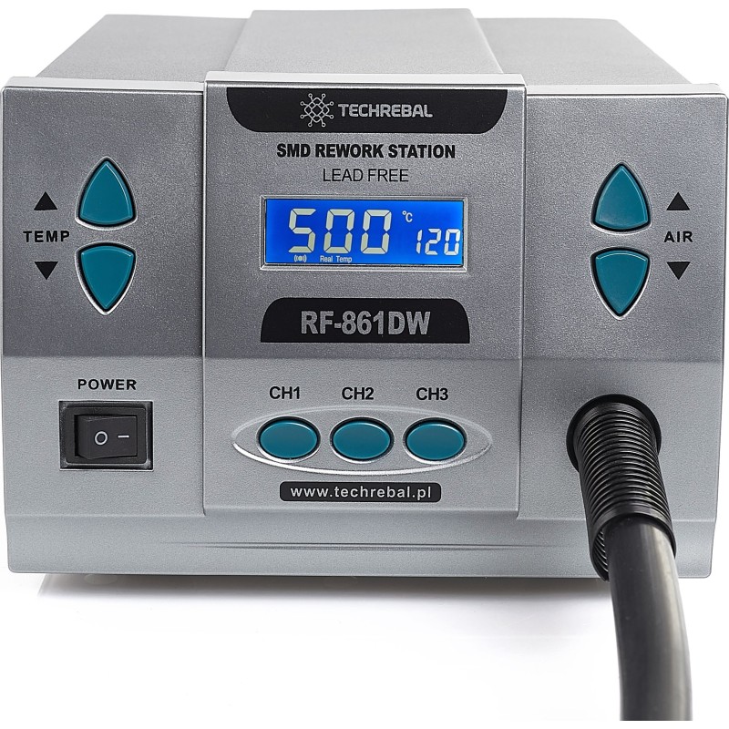 Die Heißluft-Lötstation Techrebal 861DW 1000W ist ein professionelles Gerät für präzise Lötarbeiten, ideal für Fachleute in der Elektronikbranche. Sie ist mit einer leistungsstarken Turbine ausgestattet und ermöglicht präzise Einstellungen, was ein effektives Löten garantiert. Sie ist einfach zu bedienen und verfügt über ein digitales Display, das präzise Einstellungen erleichtert und eine hohe Arbeitsqualität gewährleistet. Die Station, die mit unserem Firmenlogo versehen ist, steht für Professionalität und Vertrauen. Nach zahlreichen Tests weist die Station aufgrund ihrer ähnlichen Konstruktion ähnliche Parameter wie die Station Quick 861DW auf. Wir bieten auch Zugang zu allen Ersatzteilen.