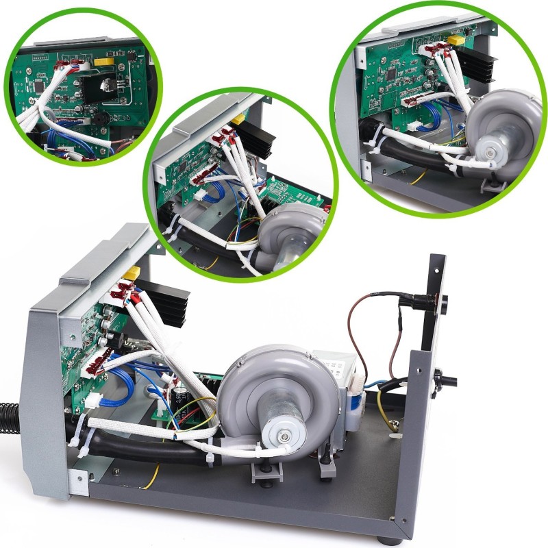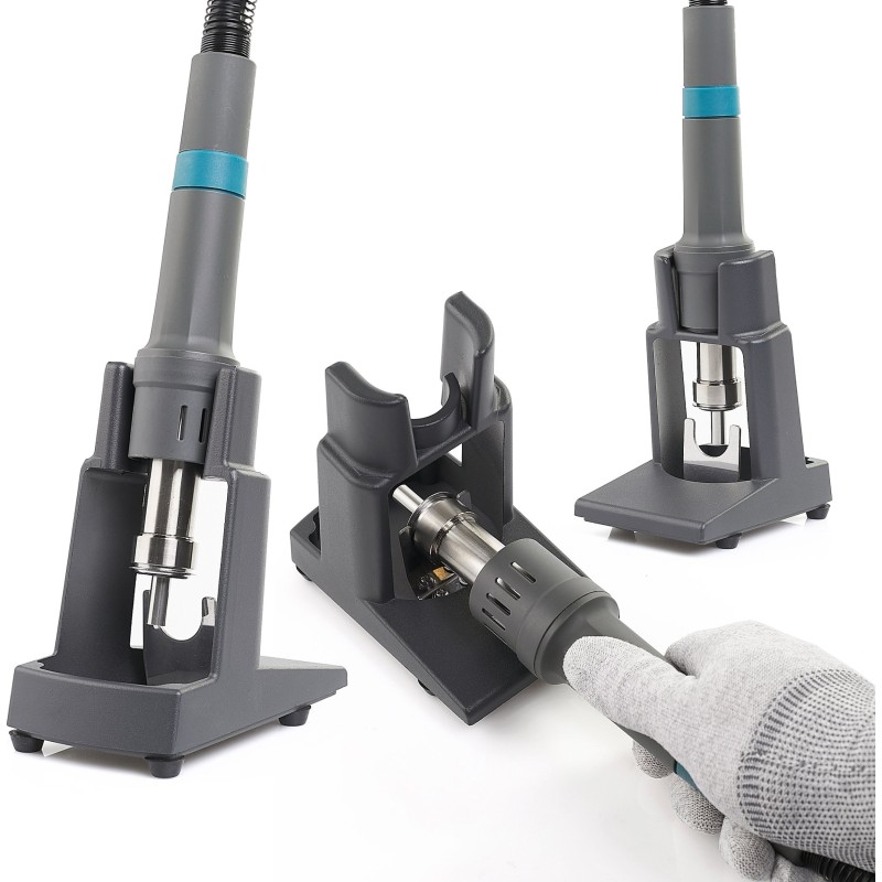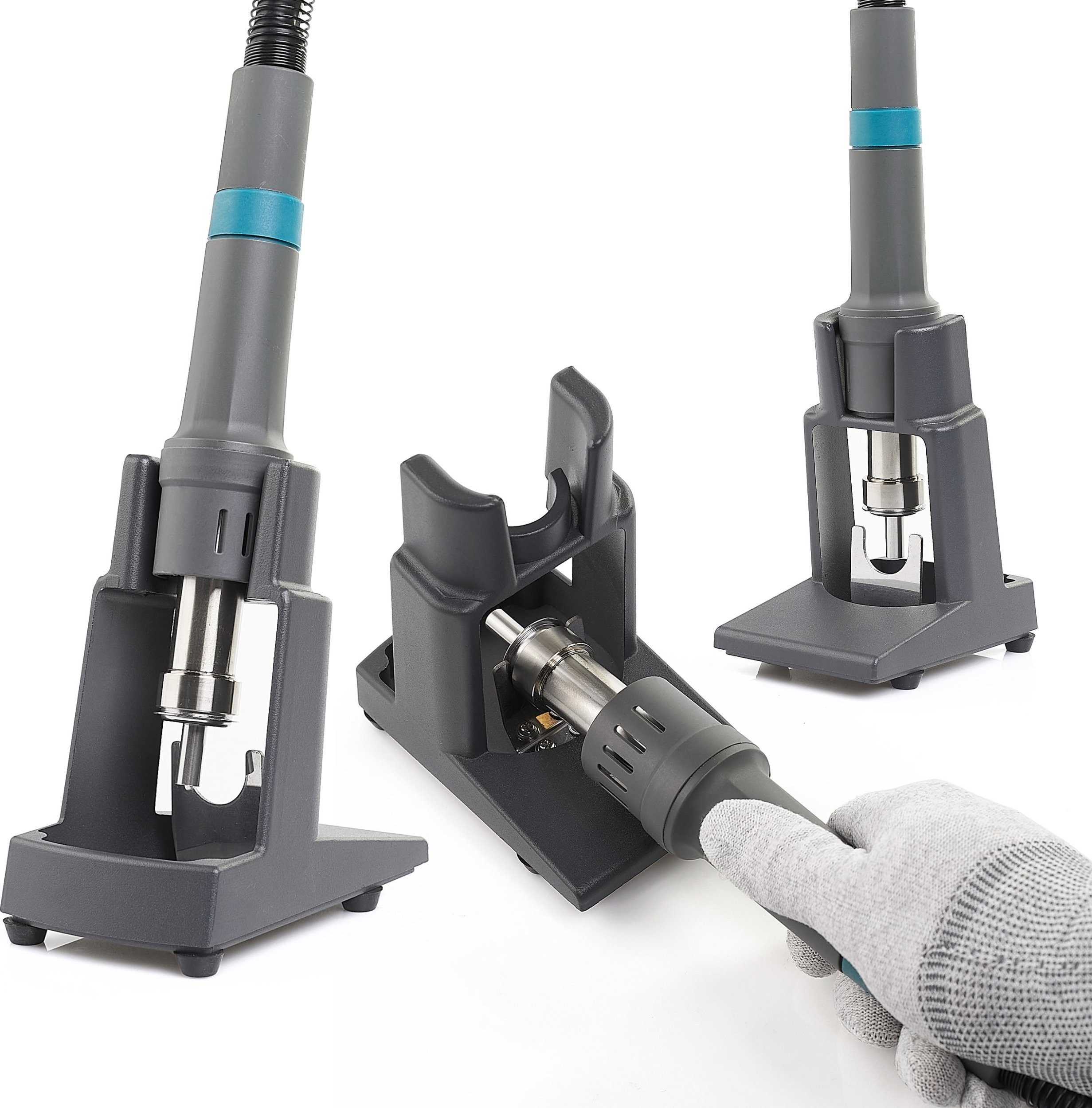 Das langlebige Heizelement erreicht schnell die gewünschte Temperatur, was für eine effiziente Arbeitsweise sorgt. Das Heizelement verfügt zudem über eine verlängerte Lebensdauer. Nach der erneuten Verwendung des Kolbens kehrt das Gerät schnell zur zuvor eingestellten Temperatur zurück. Sichere Einstellungen werden durch eine Passwortsperre sowie eine Schutzfunktion gegen versehentliches Drücken der Tasten gewährleistet. Die Station bietet dank des bürstenlosen Motors einen großen Einstellbereich für den Luftstrom und wurde mit antistatischer Technologie (ESD Safe) hergestellt, was für ihre hohe Qualität spricht.
